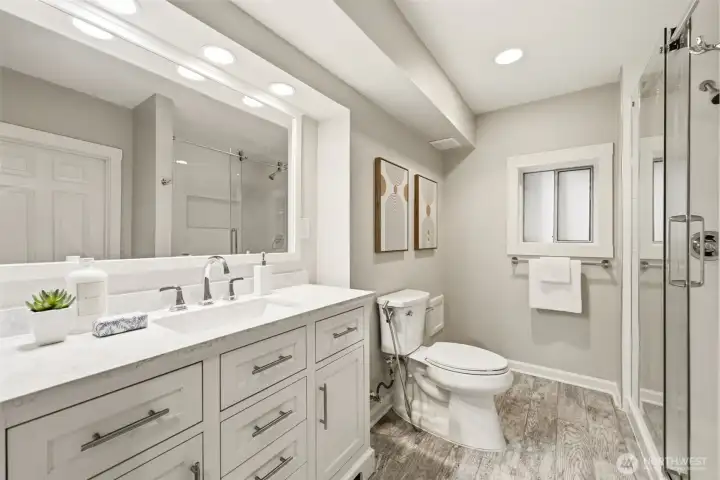 This beautiful home is tucked away in the heart of Kirkland with views of Lake Washington. Featuring 4,640sf with 5 bedrooms, 3.5 bathrooms, this home offers the perfect blend of space, comfort, and Northwest charm. The expansive primary suite provides a private retreat with spa-like bath and two spacious closets, along with a sitting space with a fireplace and French doors leading to a private deck. Light-filled living spaces with soaring ceilings and expansive windows showcase stunning lake views while creating an inviting setting for everyday living and entertaining. The open-concept main floor connects the dining, living, and gathering spaces, with easy access to an expansive deck with stairs to garden space ideal for entertaining,The lower level provides versatile living space with a bedroom and private bathroom, perfect for guests, a home office, or additional living space. Step outside to a tranquil backyard with garden space and room to relax and unwind. Don't miss the 4-car garage, providing expanding space for vehicles, storage, /and or workshop. Just up the street from Downtown Kirkland, Google, Cross Kirkland Corridor, sought after schools, and 405.
