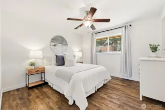Commuters dream home located on a sundrenched 8,379 sq ft corner lot full of potential for future development, shop, or just room to play! Fresh interior paint & trim, hardwood floors, vinyl windows with new hardware and lighting fixtures throughout the home. 3 bedrooms, 1 full bath, living and dining rooms and a complete kitchen upstairs. The finished basement includes a rec room and a bonus flex space with built-ins that create tons of potential. Spacious 1 car attached garage. Huge fenced backyard, shed for storage, garden space, gated access with ample off-street parking. Quick access to both Hwy 509 and Hwy 518. Minutes to shopping & business hubs, parks, schools and major highways.