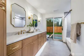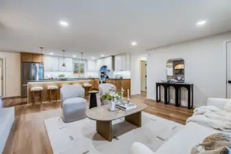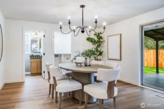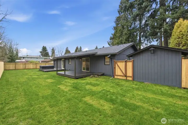 Featuring a newly renovated mid-century, one story home presents timeless architecture and is refined for modern living. Clean lines honor the home’s original design, while elevated, meticulous finishes bring a fresh sense of sophistication. The fully modernized home offers 4 bdrm/2.5 bath extending 1868 square feet precisely designed while perfectly situated on .29 acre. Enter the front door to a welcoming living room presenting a gas fireplace, custom built-in shelving and an open concept to a sizable, entertaining kitchen. The beautifully designed kitchen offers two-toned cabinetry, stainless steel appliances, large sink with polished brass fixtures and gorgeous countertops. The expansive kitchen island provides an eating space with an additional designated dining area. The impressive primary suite with walk-in closet, boasts a full bathroom offering serenity with a stand alone soaking tub and a dual rainshower conceived as an open, immersive experience designed with precision and functionality. Designated laundry room, large walk in pantry and mudroom entrance directly off 2 car garage. Partially fenced backyard with covered and uncovered deck areas, along with a hot tub for evening relaxing. Home ideally setback from the street with plenty of driveway parking, surrounding landscaping and newly laid sod. Conveniently located with easy I-5 access, short distance to shopping and community offerings. This stunning home will not last long!