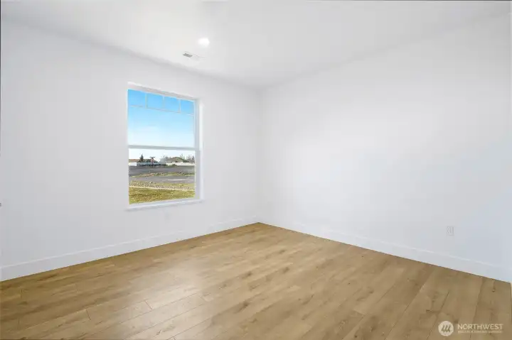 Stunning new construction home on a spacious ½-acre lot in desirable Willow Crest Estates. This contemporary modern residence showcases eye-catching architecture with stucco siding, horizontal window design, and warm wood accents. The thoughtfully designed floor plan offers 3 generously sized bedrooms plus a dedicated office, ideal for remote work or flex space. The great room is the focal point of the home, highlighted by a sleek water vapor electric fireplace that adds modern style and ambiance. The gourmet kitchen features white soft-close cabinetry, stainless steel appliances, quartz countertops, and quartz window sills, paired with light wood-tone luxury vinyl plank flooring throughout for a bright, cohesive look. Enjoy outdoor living on the oversized covered back patio with vaulted wood ceiling, overlooking a large fenced backyard with underground sprinklers. The front yard is fully landscaped with curbing and irrigation for easy maintenance. With ample space for RV parking and room for a future shop or outbuilding, this property offers flexibility and long-term value. A rare opportunity to own a modern home with acreage, privacy, and upscale finishes.