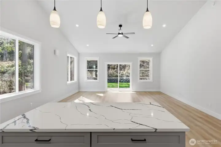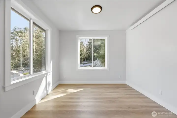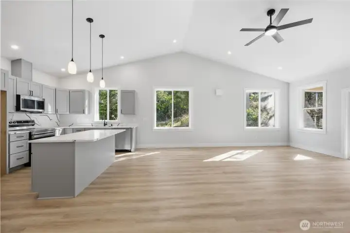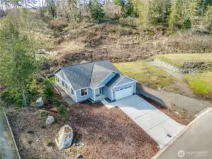 Quality new construction on a spacious lot in a desirable Port Townsend location. Designed for easy one-level living, the home features only a few steps to the front door and from the garage. An ideal layout for remote work, the dedicated office off the entry offers convenient client access while preserving privacy in the main living areas. Vaulted ceilings bring in abundant natural light, and a sliding door from the living room opens to a covered patio that expands your living space. The large primary suite includes a walk-in shower, walk-in closet, double vanity, and a separate linen closet. Built with efficiency and longevity in mind, the home includes ductless mini-split heating/cooling and upgraded plywood sheathing. Amenities include: gutter guards, high-end ceiling fans in the primary bedroom and living room, solid Codel doors with matching premium hardware, smart storage w/several ideally placed closets, recessed lighting and trimmed covered patio, fully finished, oversized garage, cedar-trimmed exterior windows, and custom plywood cabinetry. Located on a quiet dead-end street just a short stroll from Cappy’s Trails and a quick drive to downtown Port Townsend.