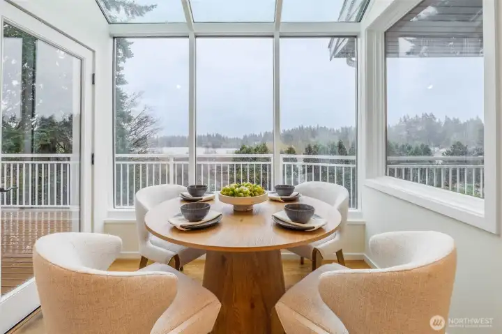 This remarkable home overlooking Phantom Lake offers over 4,300 square feet of thoughtfully designed living space with territorial and lake views from nearly every room. Set on a quiet cul-de-sac, enjoy a sense of peace and privacy while remaining minutes from major highways and all Bellevue has to offer. Five bedrooms and 4.25 bathrooms provide exceptional flexibility featuring a main level primary suite on its own wing of the home and an expansive lower level ideal for guests or potential ADU . The kitchen features dual islands, high ceilings, and a beautiful dining nook, while the sprawling back deck extends the living space outdoors. Three-car garage, ample parking, top-rated Bellevue schools, meticulously maintained, and pre-inspected.