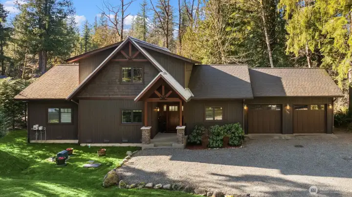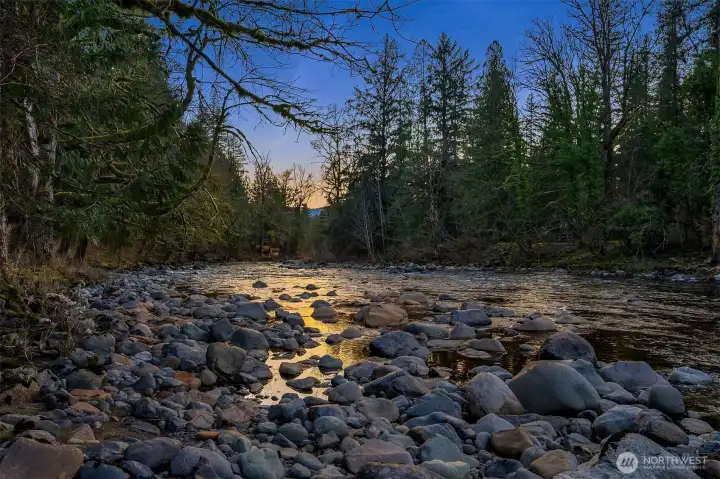 Experience the unparalleled privacy and natural beauty of Moon Valley, nestled at the base of Mount Si and one of North Bend’s most coveted neighborhoods. Tucked along 75 feet of the North Fork of the Snoqualmie River, this custom built home offers a rare combination of seclusion, riverfront living, and modern Pacific Northwest design. Built just eight years ago by the owner with lasting quality and thoughtful craftsmanship in mind, no detail was overlooked. Vaulted ceilings, exposed beams, and a dramatic open staircase define the home’s architectural character, while expansive windows frame serene river views and flood the interior with natural light. A gas fireplace adds warmth and ambiance to the main living space. The kitchen features marble countertops, high end cabinetry, and premium appliances, crafted for both beauty and everyday functionality. The home also includes a spacious two car garage. Mature hedges and established landscaping provide exceptional privacy and complement the home’s striking curb appeal. While offering a true retreat, Moon Valley is just minutes from North Bend and Snoqualmie, with easy access to I 90 and top rated schools nearby, an extraordinary opportunity to own a thoughtfully crafted riverfront home in one of the area’s most private and desirable communities.