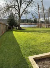 Waterfront rambler in ideal setting, close to town yet feels like vacation-land. Chambers Lake in back yard with 77 feet of no-bank waterfront, and Chehalis Western Bike & Walking Trail adjoins the full length of neighborhood with access points at North and South. Three bedroom, 1.5 bath that lives like 2 bath due to ingenious Jack and Jill style. Primary suite private bath shares the tub/shower with hall bath. Easy care vinyl plank flooring, updated kitchen and baths. Grand picture windows and sliders offer views of lake, nature and pastureland that can't be beat. Spacious patio for outdoor entertaining. Fruit trees, level property great for gardens, play or pets. Dead end street tucked behind Panorama for peace and quiet and no traffic.