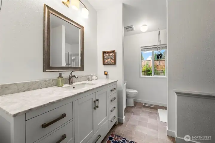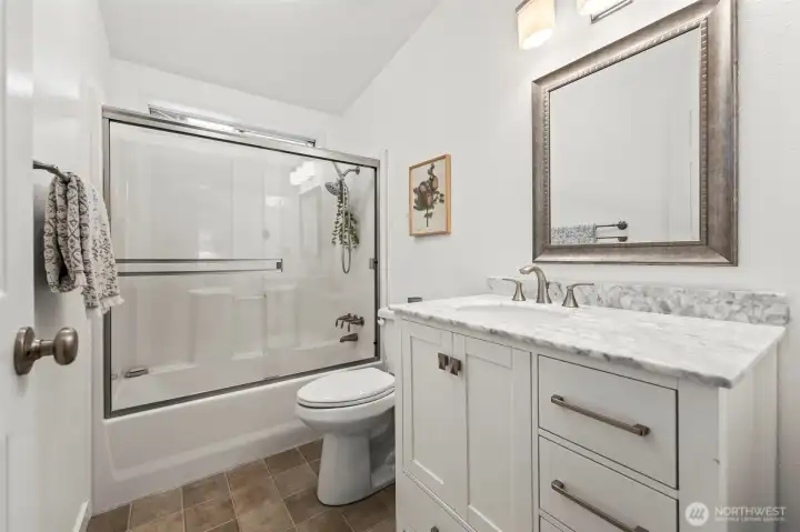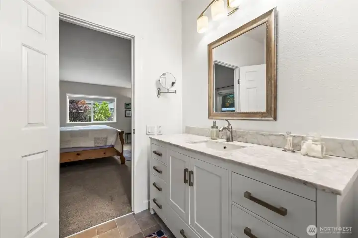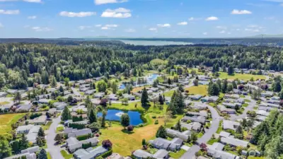 Turn Key and Gorgeous! Welcome to the Lakes, a 55+ community where convenience of the Gig Harbor North location meets the tranquility and ease of living in this remodeled upscale home. Spacious, open concept and with lots of natural light, this home features a large kitchen with quartz counters, two living areas with engineered hardwoods and cozy wood burning fireplace, a large primary suite offering an updated bath with marble counters, generously sized shower and lounging area. The secondary bedroom is great as is or a den/work out or craft room. Redesigned, the backyard features a large seating area with remote awning, raised flourishing garden beds, 4 varieties of apple trees, 2 pear trees and fig trees. The 3 car garage has an EV Level 2 charger! The community offers lakes throughout the property, 25 acres of sprawling greenbelts and walking trails right along the lake, community Clubhouse which has recently been updated and is available for a private parties and community activities along with two newer BBQs. The location can't be beat: close to all desired amenities including grocery stores, Target, Costco, retail shopping, YMCA, medical facilities and hospital, restaurants and easy freeway access!