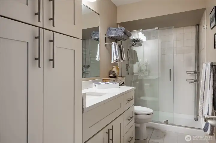 Tucked within the sought-after Gleneagle Villas in Semiahmoo, this beautifully upgraded condo offers an easy lock-and-leave lifestyle while living with the space and comfort of a single-family home. Ideally positioned just off the 15th hole of the Arnold Palmer designed course, the setting captures peaceful fairway views and the ease of true low-maintenance living—exterior care and landscaping are handled for you. Inside, the home has been thoughtfully renovated so you can simply move in and enjoy. The stunning kitchen remodel features quartz countertops, induction cooktop, island seating, and a bright breakfast nook overlooking the fairway. The main-floor primary suite - complete with its own fireplace and a beautifully renovated bath featuring a walk-in shower, jetted tub, custom closet system, and elegant lighting. Simply stunning! A dedicated office on the main level includes a built-in Murphy bed and private patio—ideal for guests or flexible living. Upstairs, two spacious guest bedrooms each feature renovated ensuite baths. New hardwood floors, air conditioning with advanced air filtration, whole-house hot water recirculating system, and a new hot water heater provide comfort and peace of mind. Attached two-car garage and abundant storage. Just minutes from the marina, scenic trails, dining, and resort-style amenities—this is the kind of home people choose when they’re ready to simplify life without giving up quality, comfort, or style. A must see!