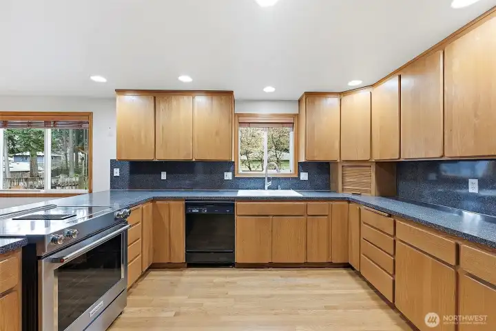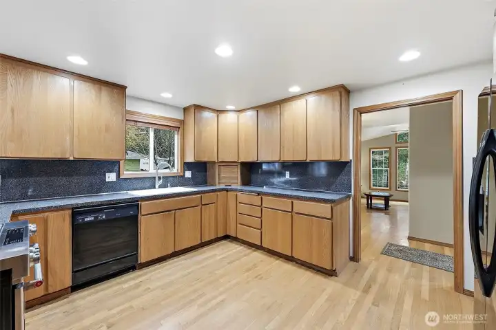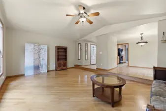 Endless Opportunity in Established Puyallup Neighborhood with 2 Primary Suites & MIL Potential. Tucked along charming tree-lined streets with classic homes and timeless character, this expansive 3,155 sq ft home offers the chance to create something truly special. Set back on a .68-acre lot, the property feels private and secluded—like your own retreat in nature—while still being minutes from downtown Puyallup, Canyon Rd and freeway access. The main level features vaulted ceilings, hardwood floors, and spacious living areas, including both a living room and family room. Formal dining room and large kitchen with abundant storage. This level also includes three bedrooms, including the first primary suite. The lower level offers a private entrance, the second primary suite, a large family room, office/den, and an additional finished room, creating excellent MIL or multi-generational living potential. Outside, the .68-acre lot offers room to relax, garden, or entertain. A detached two-car garage, RV parking, and ample additional space add to the property’s versatility. A wonderful place to call home.
