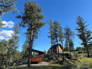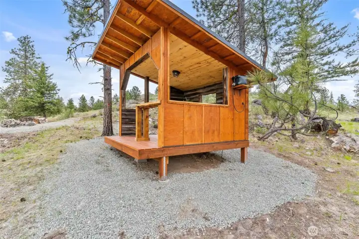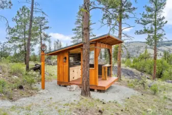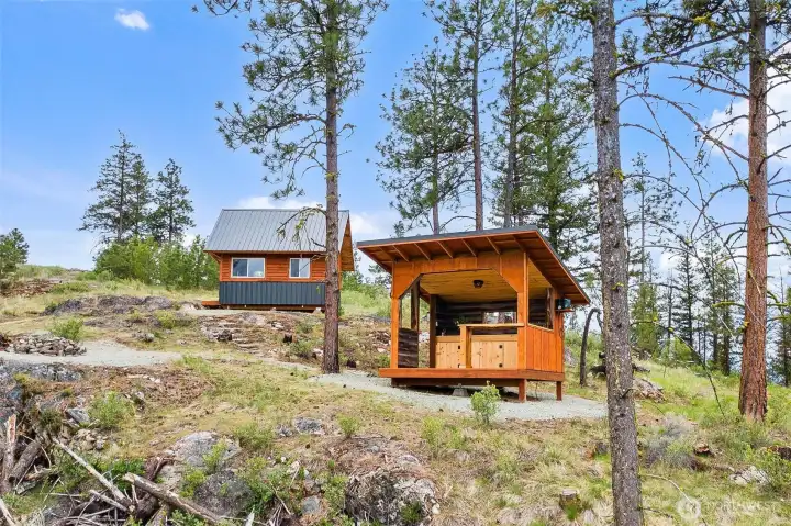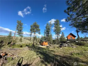 Rare opportunity to own 20 beautiful, easily accessed, treed mountain acres with stunning, hand-crafted cabin and outdoor kitchen. This gorgeous, gated land has everything you're looking for: thick stands of fir & pine, grassy meadows, rugged rock outcroppings, and big views for miles. Hike through your own picturesque canyons, snowshoe across your own gently rolling hills, and picnic amidst your own wildflowers. Zoned residential, this is an easy build with many great home sites and power at the lot's edge. Roads maintained and plowed by HOA! Camp out NOW in the cozy, insulated, off-grid, site-built dry cabin. Uniquely elegant, from the warm spruce cabinets to the work-of-art pine branch loft railing. Wired for solar...power station and panels included. A propane heater keeps the cabin warm in colder months. COOL outdoor kitchen features a stainless-steel sink with running water (small holding tank), solid pine bar top and cabinets, porcelain counters. Also wired for solar/power station. This one-of-a-kind property is peacefully located in the beautiful Okanogan Highlands, yet only minutes from town with all the amenities you need, and within an hour of HUNDREDS of world-class wineries & cideries in Washington and British Columbia. Close to dozens of clear alpine & warm valley lakes, for excellent fishing, canoeing, or swimming in one of the sunniest spots in the state. You WON'T be disappointed!