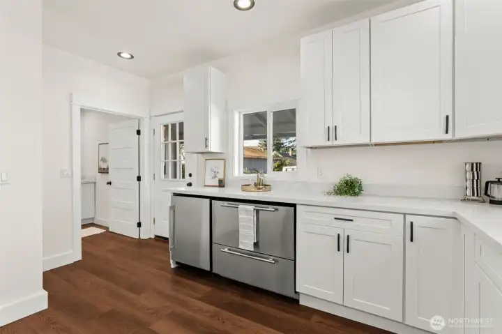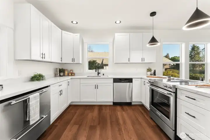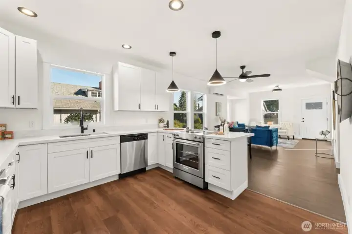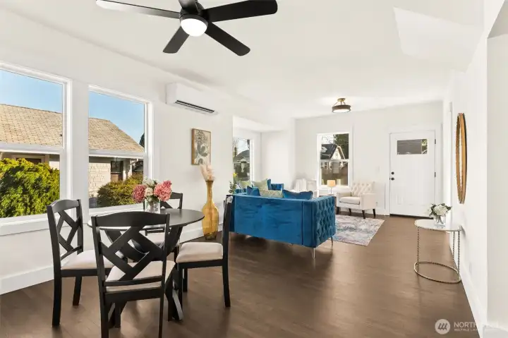 Discover this charming & beautifully updated 1911 home located in the heart of North Tacoma. Blending classic charm with modern conveniences, this property has been meticulously updated with refinished hardwood floors, new interior & exterior paint, drywall, flooring, trim, doors, fixtures, lighting, bathrooms, and kitchen. The main floor offers light-filled living & dining rooms, and the gorgeous kitchen featuring a new sink, fixtures, cabinets, and expansive granite countertops with a breakfast bar, lots of storage, new stainless steel appliances, including a modern in-cabinet refrigerator and freezer, along with one bedroom, a full bath, and a ¾ bath with laundry. Upstairs, you’ll find three good-sized additional bedrooms with peek-a-boo views of the Olympics. Stay comfortable year-round with two new Ductless HP mini-splits & additional wall heat. Wired for solar. The home also includes an 864 sq ft unfinished basement for added storage or additional square footage, alley access to a one-car garage, and a fenced backyard (grass was just seeded). Enjoy the great location with easy access to parks, shopping, dining, and the scenic Ruston waterfront. Don’t miss the opportunity to make this beautifully updated home your own! 3D Tour available.