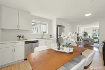 Charming & spacious home w/3 bedrooms all on one level. Beautifully updated eat-in kitchen features new cabinets, quartz countertop & all new SS appliances. Don’t miss the pantry. Original hardwood floors in the 16’ x 19’ (!) oversized living room flooded w/light from the picture window. Need a place for your 100-inch flatscreen TV? No problem! Ample-sized bedrooms also w/original wood floors. Primary bedroom easily fits a king-size bed. Generous bath w/new quartz-counter vanity. Separate laundry room. All appliances included. Great closet storage. Fenced side yard and beautifully landscaped front yard exclusive to this home. One off-street parking space w/easy street parking. Enjoy nearby Kubota Gardens or take a walk on the Chief Sealth Trail. A few short blocks to Hutchinson Park (major renovation in 2026!) Less than 1.5 mi to Rainier Beach light rail station. Easy I-5 access. Preinspected! Ask about $10K credit from WA Trust with no income limits!