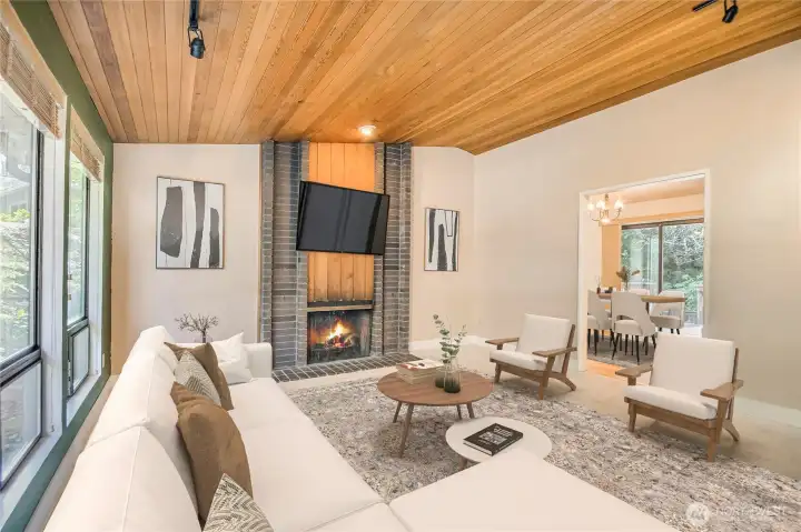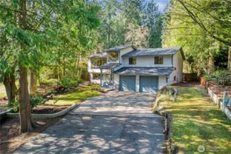 Beautiful, established, serene, wooded neighborhood in Picnic Point area! Thoughtful spaces, generous sized fully fenced lot, multi level deck, ideal for a vibrant outdoor life, gardening, play or relaxing in your own private, natural setting. Fruit trees and mature landscaping w/stepping stones and patio for fire pit. Covered front entry to light filled home with large windows and wood blinds. Fresh interior paint. Spacious kitchen, all stainless steel appliances stay. Formal dining, living area with fireplace and vaulted ceilings. Separate stairs to front facing loft/office/reading nook. Large primary suite with private 3/4 bath and walk-in closet. Full guest bath and 2 more bedrooms upstairs. Lower level opens to patio, backyard. This part of the home features a large bonus room with fireplace + flex area that could be additional office. Downstairs also has a 4th bedroom and ample storage areas. Huge laundry room, 3/4 bath, Double car garage. Lot set against private greenspace. Newer roof and furnace! Alarm system in place. A large driveway with additional space for RV or boat parking. Pre-inspection is available for your peace of mind. Excellent Mukilteo Schools.