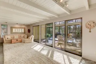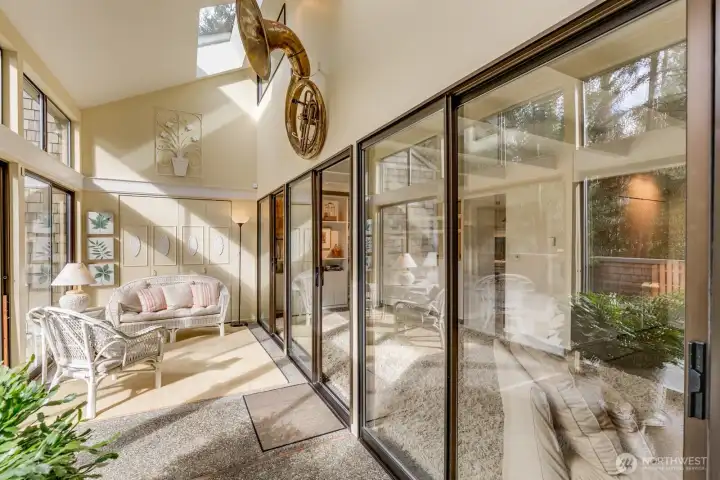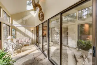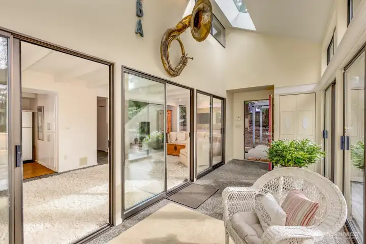 Private retreat on .29 acres, this stunning 2,155 sq ft home was originally crafted by Mike Daffron and enhanced with beautiful additions, including a electric wall fireplace. Light-filled and thoughtfully designed, the home features 3 bedrooms, 1 3/4 bathrooms, plus a dedicated office. The primary suite offers two closets and a 3/4 bath, while abundant storage is found throughout the home. Vaulted ceilings highlight both the living and family rooms, complemented by skylights that fill the space with natural light. A sunroom adds year-round enjoyment and flexible living space. Additional features include main-level laundry, energy-saving features, for added peace of mind. Enjoy outdoor living on the large, newly painted entertainment deck, ideal for relaxing or hosting guests. Set in a private natural setting yet conveniently close to shopping, dining, and amenities, this home offers the perfect balance of tranquility and accessibility.