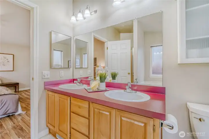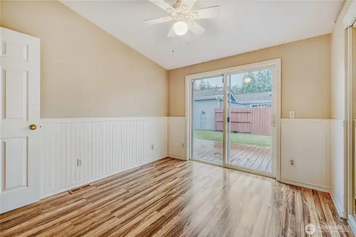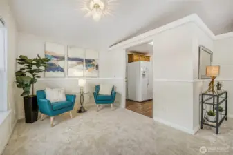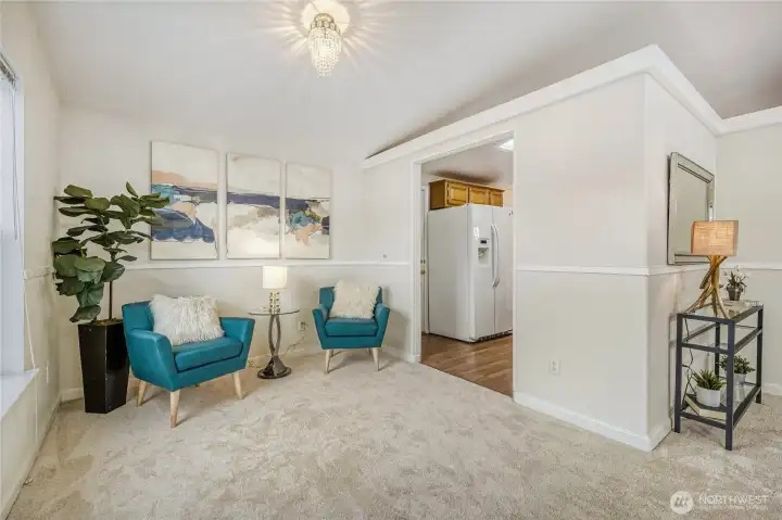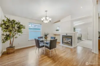 Welcome to the sought after Lake Wilderness Villa, a premier 55+ gated community! This light-filled home features vaulted ceilings and skylights that bring in abundant natural light. Enjoy a spacious formal dining room and a large kitchen with extensive counter space and a built-in desk. The generous primary suite offers a walk-in closet and 5-piece bath. A two-sided gas fireplace adds warmth and charm. Additional highlights include a separate laundry room with extra storage, attached 2-car garage, updated paint and carpet, gas furnace and A/C. Relax in the private fenced backyard with garden space, composite deck and low-maintenance turf. Residents enjoy a clubhouse, game room, sport court, library, BBQ area, putting green, guest parking and RV parking. Dining, shopping and trails just minutes away.