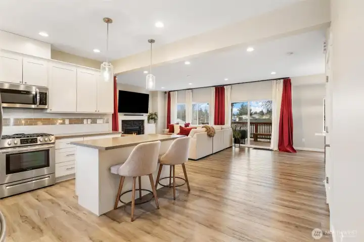 Gem 88 Resale! Much loved 2022 home situated on quiet cul-de-sac. This home features a gourmet kitchen, higher end appliances including a hard to find gas stove in new construction and a main floor bedroom! You will love the high ceilings, open-concept great room with gas fireplace, quartz countertops, and top of the line LVP flooring. 2nd floor features vaulted ceiling in the master suite, with a luxury en-suite including a beautiful tiled bathtub. Bedroom 2,3 & 4 have a shared bath & large laundry room. If you love barbecues on a covered X-large deck - you will love this home. The deck overlooks your large fenced in backyard. Home equipped with A/C, Tankless water heater & energy efficient gas furnace! Great location minutes to I-5, 512, mall, shopping, restaurants, & JBLM!