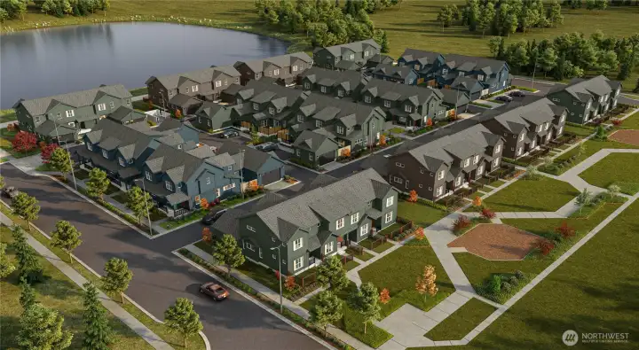 Welcome to Trailside, a new Cordata Townhome community alongside Northern Lights Park. These modern, craftsman style homes offer warm, premium finishes throughout w/ thoughtfully designed floor plans that check all the boxes. This is a 2-bedroom design w/ a 2-car driveway & fenced front yard along the park. Main floor offers a welcoming great room, half bath, and kitchen w/ quartz counters, custom wood cabinets, & stainless-steel appliance package. Upstairs you will find the laundry room & 2 large primary bedrooms w/ en-suite bathrooms & walk-in closets. Features include ductless heat/AC, premium flooring, outdoor storage, 9-ft ceilings on main floor - the list goes on. Ready for you to move in & make it your own!