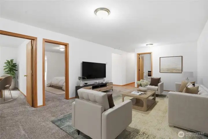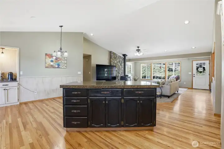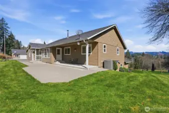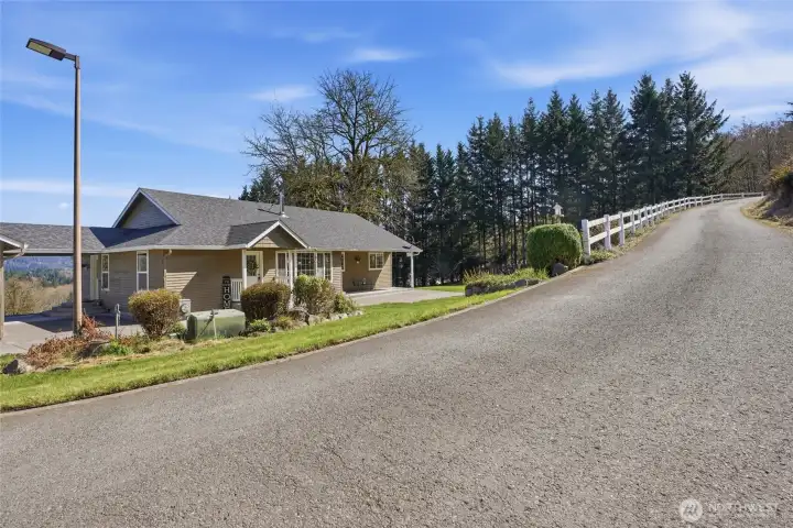 Nearly 4 private acres with a daylight ranch and beautiful mountain views in Amboy. Vaulted ceilings, hardwood floors, and a wood stove for cozy nights, plus A/C for warmer days. Natural light fills the open-concept main living area, and the oversized dining space is perfectly positioned to take in the scenery. Kitchen features granite countertops, stainless steel appliances, an island, and a coffee/wine station. The finished daylight basement with two oversized rooms (each with two closets), an office, full bath with sauna, laundry, and a large family room with its own exterior entrance. Lower level layout may work well for multi-generational living or separate living quarters, with space to add a kitchen (buyer to verify). Outside features include a deck, patio, fenced and cross-fenced areas for livestock, workshop, RV parking, and a detached oversized garage/carport. Private road with territorial views. A solid setup with space, flexibility, and peaceful county living.