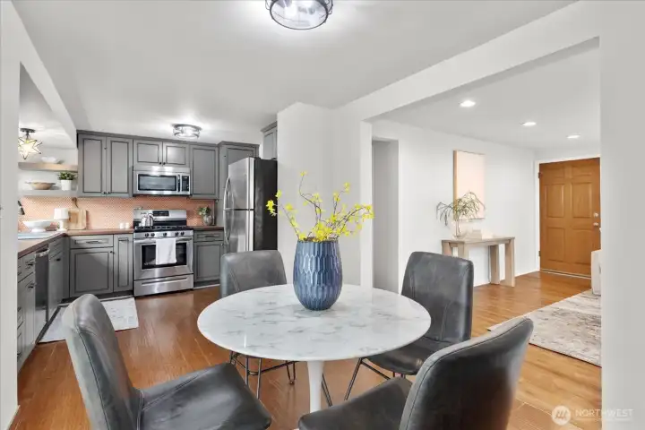 Charm, character, and modern updates abound in this inviting 3 bed/1 bath home! Easy single living with 2 good size bedrooms + den/office with spiral staircase to versatile loft area—perfect as bedroom, office, or creative space. Thoughtfully updated with new siding, heat pump with A/C (2022), and newer roof (2019), this home is truly move-in ready! Remodeled kitchen (2018) features stylish tile, new cabinetry, and butcher block countertops, while recently refinished hardwoods and fresh interior paint are an added bonus. Kitchen/dining space opens to 7,150 sq ft fenced lot - ideal for entertaining, gardening & more. Located minutes from Downtown Burien, you’ll love the easy access to local restaurants and cafes. Commuters will also appreciate the quick drive to Seattle and proximity to the airport, making travel and daily errands seamless. Features lots of driveway parking + convenient shed. A great condo alternative with an assumable VA loan option. Whether you’re a first-time buyer, investor, or looking for a home with long-term growth potential, this is an opportunity to enjoy a quieter neighborhood, minutes from it all!