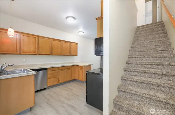 Location meets versatility! Situated just outside the JBLM gates and minutes from I-5, this turnkey townhome condo is ready for its new owners. This well maintained home features 3 spacious bedrooms, each with its own bath, and fresh updates! The main level boasts an airy, open-concept floor plan flooded with natural light, plus a private balcony off the large kitchen perfect for summer evenings. Downstairs, the ground floor offers a versatile bedroom and 3/4 bath with a private side entrance—an ideal setup for a home office, guest suite, or potential rental income. All appliances included and a one car garage!