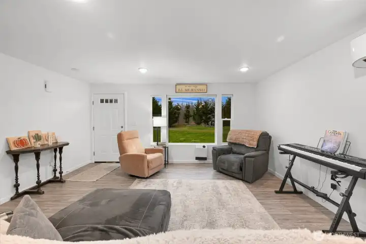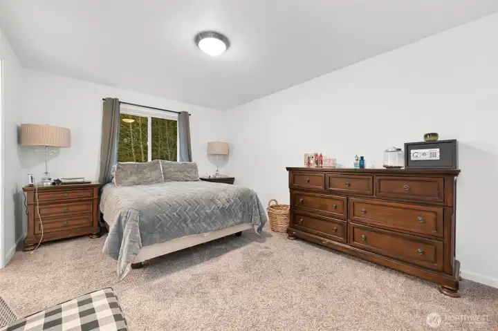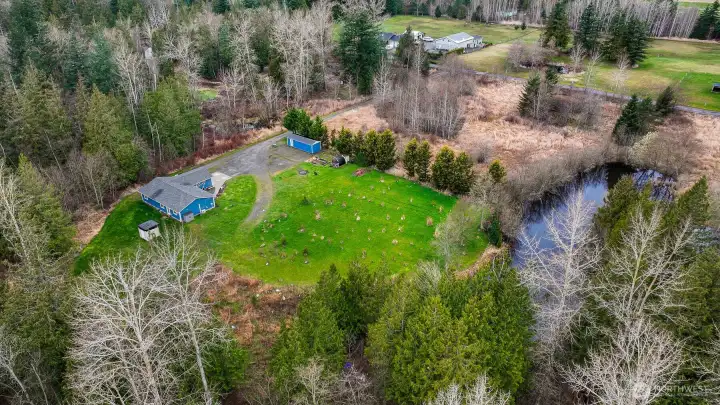 Tucked at the end of a long private drive, this rare one-level property offers the perfect balance of modern comfort, usable acreage, and everyday convenience. Ideal for a household seeking space to grow or those looking to simplify without giving up land. Built in 2021, the thoughtfully designed 1,400 sq ft home features 3 bedrooms plus a flexible bonus room and 2 full bathrooms, including a private en-suite off the primary. The open, efficient layout and attached garage support easy, low-maintenance living. Outside, 4.6 flat, wooded acres create your own private playground. Pets and hobbyists will love the space to explore, while the peaceful pond with 160 sq ft powered cabin offer endless possibilities for a quiet retreat. RV hookups, private well, and a recently added 12x32 shed add valuable functionality and storage. Enjoy the serenity of being tucked away while remaining just minutes to north Bellingham shopping, dining, and I-5 access. A hard-to-find opportunity to own newer construction on beautiful acreage. Private, practical, and perfectly suited for your next chapter.