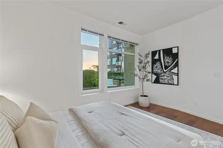 Rare ground-floor waterfront condo w/ private terrace in the coveted Waterfront Landings. Unlike typical condo balconies, this oversized terrace offers a rare and usable outdoor retreat with amazing waterfront and sunset views — an extension of your living space perfect for morning espresso, curated container gardens, intimate gatherings, or unwinding in the fresh Puget Sound air. Inside, an open-concept design is elevated by abundant natural light and a seamless flow between living, dining, and kitchen spaces. Fresh designer paint, new appliances, and updated countertops with a modern backsplash that feels both timeless and move-in ready. The thoughtful floor plan balances openness with privacy, offering comfort without compromise. Two secure garage parking spaces add exceptional convenience and value, along with access to a dedicated hobby room for additional flexibility. Residents enjoy a full suite of resort-inspired amenities: 24/7 concierge service, a fully equipped fitness center, hot tub and sauna, rooftop terrace with BBQ and sweeping views, and a private guest suite available for guests. Secure entry ensures both privacy and peace of mind. Just steps from Waterfront Park, Pier 62, Pike Place Market, acclaimed dining, ferries, and downtown conveniences, this residence offers a refined blend of vibrant urban living and tranquil waterfront ambiance. No rental cap, making this an exceptional opportunity for discerning homeowners or strategic investors.