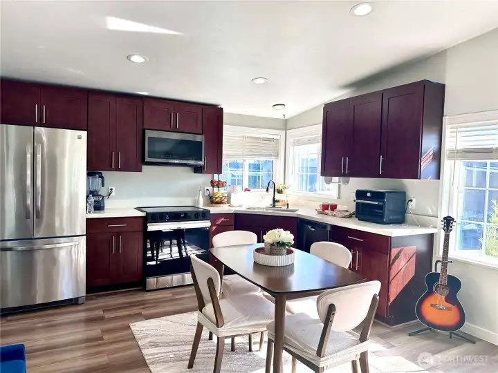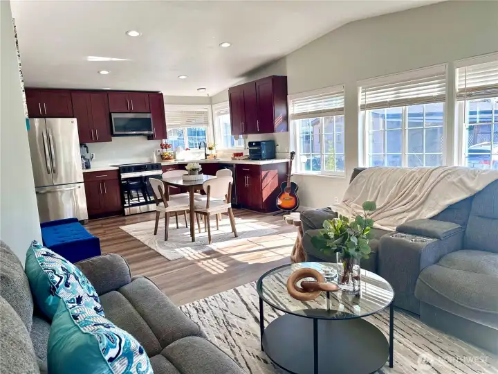 Welcome to this updated and charming 3-bedroom, 2-bath home located in a desirable Meridian Village, all-ages park. This inviting living room is perfect for everyday living, filled with natural light from large windows. Featuring new floors, a remodeled kitchen, and an open-concept design. All the appliances stay. The spacious living room invites you to relax, while the primary suite features a private remodeled bath with a walk-in shower for added comfort. Enjoy the convenience of a utility room, easy back entrance, 4 cars/cover parking , and extra storage in the backyard. The generously sized yard with mature plants and green grass creates a peaceful, cozy outdoor retreat. Ideally located just minutes from schools, parks, shopping, dining, and convenient commuter routes—this move-in ready home truly offers comfort, charm, and everyday convenience.