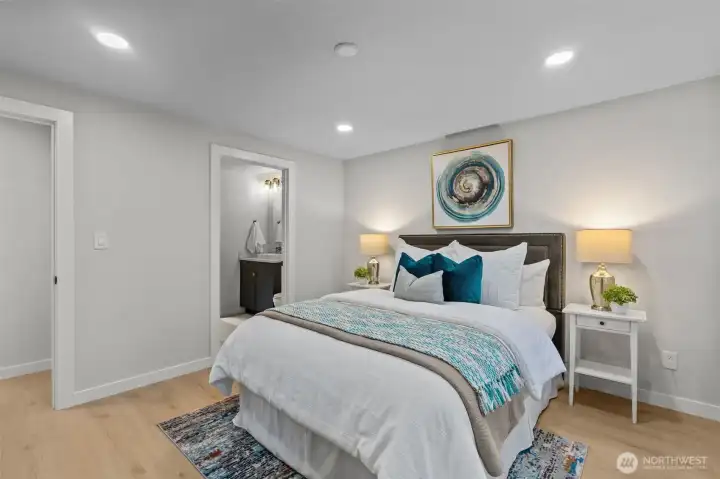 Modern elegance meets quiet Bellevue living in this fully reimagined, move-in ready 3 bed (+ office), 2.5 bath home in the sought after Eastgate neighborhood. Thoughtfully renovated from top to bottom, this turnkey residence showcases clean architectural lines, picture windows with natural light, elevated designer finishes, and seamless indoor-outdoor flow. The main level features a sunlit open-concept layout with a chef's kitchen and a private primary bedroom with en suite bath. Downstairs offers two spacious guest bedrooms, family room, flex/office space and a stylish 3/4 guest bath. All-new systems, floors, baths, and fixtures provide effortless, low-maintenance living. Nestled on a quiet street near top-rated Bellevue schools, parks, and I-90. Pre-inspection report available.