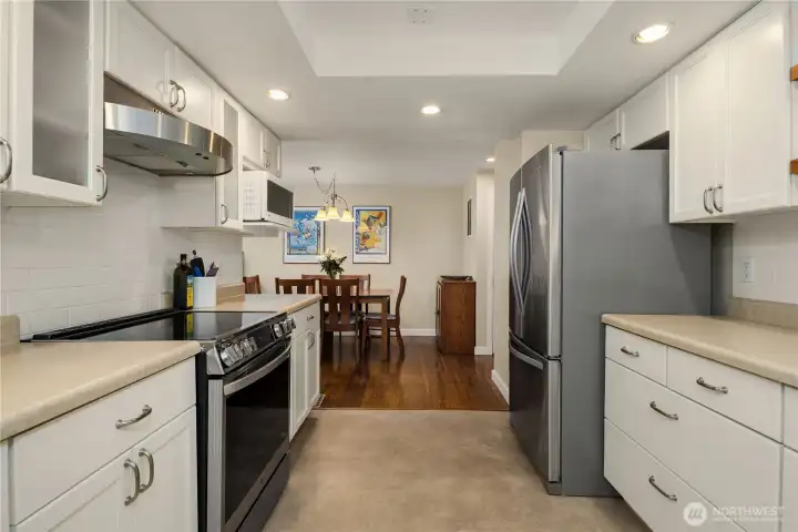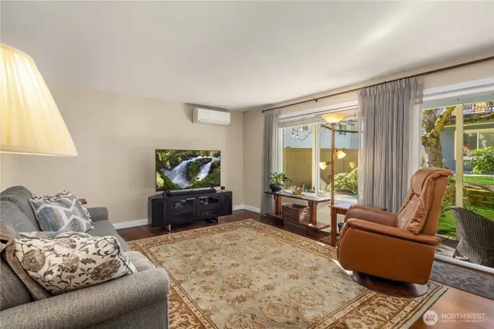 Rare opportunity in the Juanita Beach area of Kirkland! This spacious 1,238 sq ft end-unit condo offers a unique combination of features seldom found in condo living. Features include A/C (one of only two units in the complex), gas plumbing, and a cozy gas fireplace! Beautifully remodeled throughout, you’ll love the updated kitchen with stainless steel appliances, updated bathrooms, new flooring, and the convenience of two showers. The generous ground-floor layout opens to a large covered private patio—perfect for entertaining or relaxing year-round. Parking is exceptional with a private one-car garage PLUS an additional assigned parking space. Residents enjoy a beautiful courtyard, community garden, clubhouse with sauna, and close proximity to Juanita Beach Park. Exterior siding, paint, and windows were updated in 2015. Ideally located just moments from Juanita Beach Park and Lake Washington, with easy access to shops and dining in Juanita Village and minutes to downtown Kirkland. Located within the desirable Lake Washington School District. HOA dues cover water, sewer, garbage and ground maintenance. No Rental Cap Exceptional space, upgrades, and location—this is Juanita living at its best!