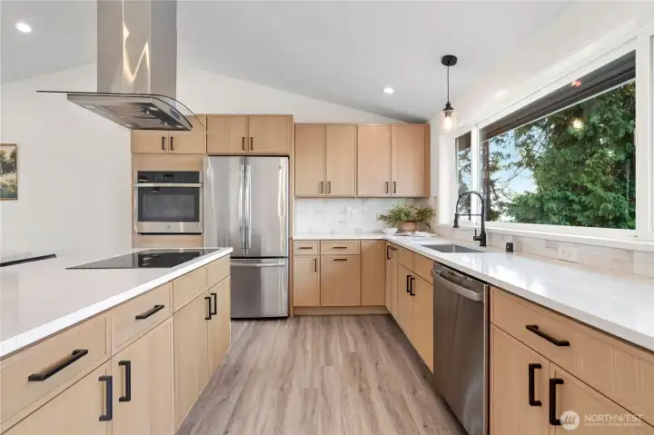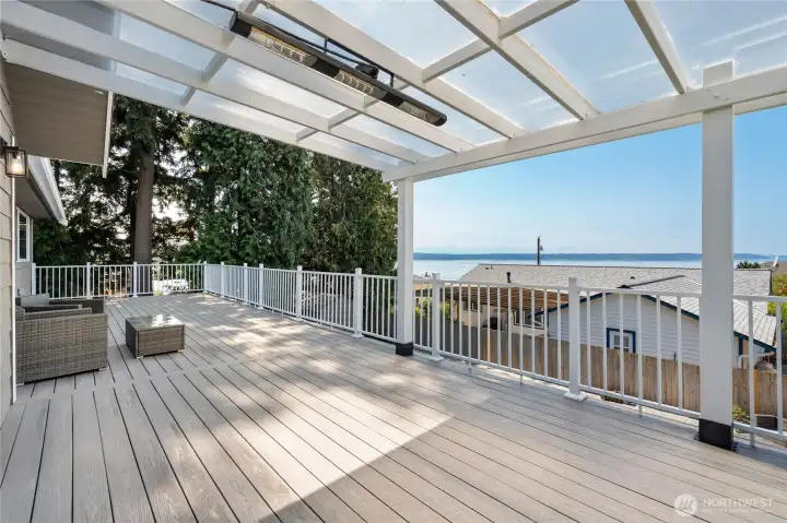 Experience the perfect blend of modern comfort and seaside serenity in this stunning 3 bedroom 2.5 bathroom split-level home, perched to capture sweeping Saratoga Passage and Puget Sound views. The bright upper level features a vaulted great room and a chef's kitchen boasting custom oak cabinetry, quartz countertops, a high-performance vent hood and a window seat to soak in the vibrant sunsets. Tastefully updated throughout the interior offers a versatile lower level with a spacious rec room, dedicated den/office, and a convenient half-bath with utility area. Outdoor living is equally impressive with an expansive back deck overlooking a level, landscaped backyard with a fire pit and storage shed. Located in the desirable Madrona Beach community with no HOA. This home includes a spacious garage, and RV parking. Home has been pre-inspected on 3/3/26 for buyer peace of mind.