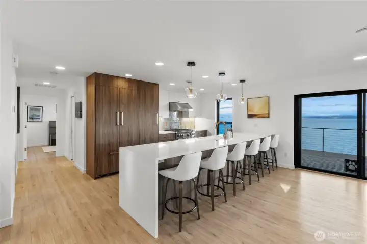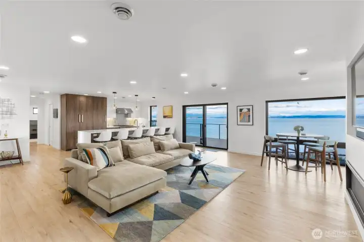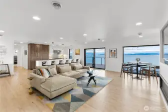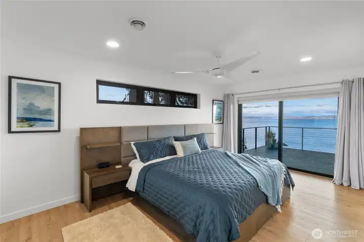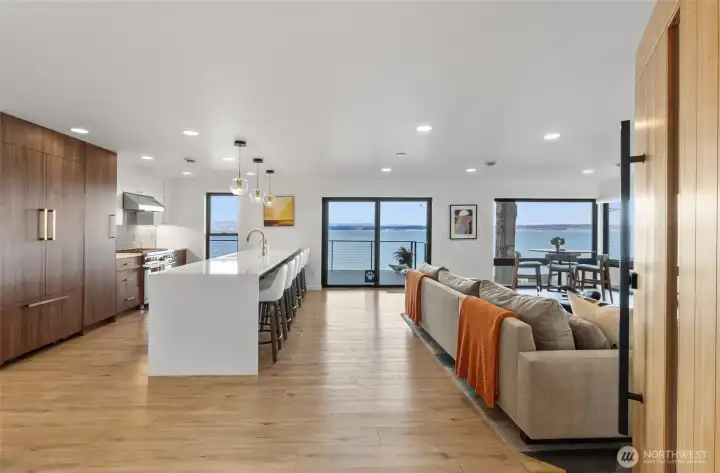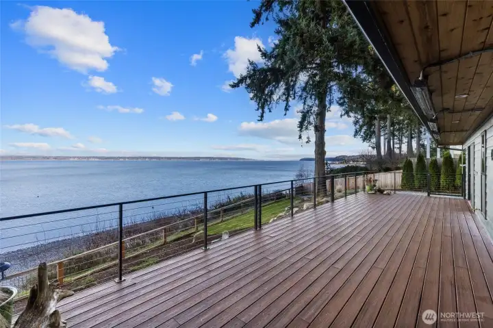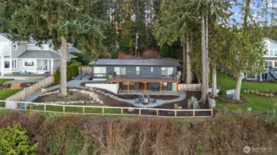 Come experience the best island life has to offer in this stunning waterfront retreat! This home showcases 180 degree views of Port Susan Bay, the Cascade Mountains and Mount Baker. Fully remodeled in 2021 with high end finishes and craftsmanship this move in ready home blends comfort and luxury with breathtaking scenery. The open concept main level is designed for both everyday living and entertaining. Step out onto the expansive deck, enjoy the chef's kitchen with Wolf range, built in refrigerator and island seating for 6! The butler's pantry offers ample storage and a Scotsman icemaker. Primary bedroom with en-suite and an additional bedroom and bathroom round out the main level. The lower level offers excellent flexibility with 2 more bedrooms, full bathroom, living area, and kitchenette with wine storage all opening to a covered patio and firepit area perfect for guests or multigenerational living. From this mid-bank home you have staircase access to private bulkhead, beach shed, the ability to moor your boat directly in front of the house and includes a dinghy so Puget Sound adventures are just steps away! Boating enthusiasts will appreciate easy access to the Cavalero boat launch just down the street. Additional features include Cat5 wiring, Starlink, automated whole house generator, metal roof, tankless water heater, water filtration system and high efficiency heating and cooling completing the exceptional waterfront living. Offered partially furnished!