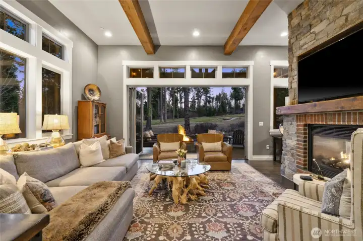 True golf front luxury meets proven turnkey investment. This custom retreat offers standout design, strong rental history, and a VRBO website that conveys. Thoughtfully designed with a refined eye and perfectly positioned along the 14th fairway of the Prospector Golf Course, the home blends distinctive architecture with proven income performance. Elevated finishes, curated details, and a layout guests love have produced a strong and consistent rental history, creating a rare opportunity to own a home that feels extraordinary while performing at a high level. Expansive Nano doors open to a covered outdoor living space anchored by a dramatic firepit for all-season indoor-outdoor living and an effortless connection to nature. Inside, wood beams and authentic brick inlay, most striking in the kitchen, adds warmth, texture, and a magazine worthy aesthetic that sets this home apart from typical resort properties. Designed for gathering and retreat, the home offers an upper-level bunk room, dedicated entertainment space, and a convenient office nook ideal for working remotely without missing mountain life. The neighboring lot is slated to remain undeveloped, offering rare added privacy, with close proximity to trails, pools, restaurants, The Lodge, and the new Suncadia Social Village. High-end furnishings are negotiable, creating an effortless move in or income ready opportunity in one of Suncadia’s most desirable settings. This is one home you have to see to truly appreciate.