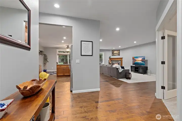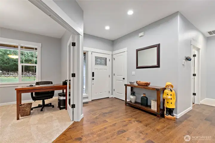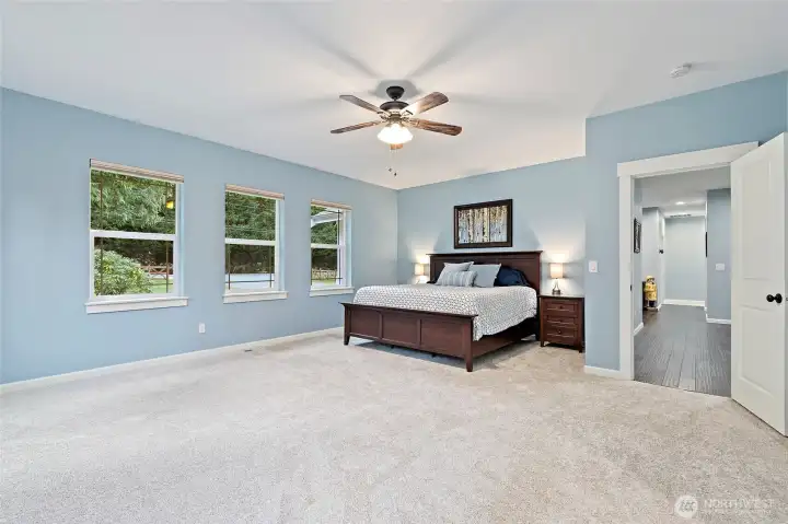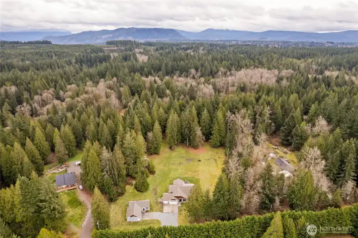 Incredible opportunity to own a pristine condition home, with beautiful upgrades, and true pride in ownership. This 3 bedroom, 2 bathroom home also has an ADU with its own 1 bedroom and 1 full bath. Prime location to Downtown Arlington, or your RT 9 travels. Located on private acreage backing to Armstrong Creek. This like-new residence showcases hand-scraped hardwood floors, granite countertops, stainless steel appliances, cherry cabinets, and brand-new carpet throughout. The expansive primary suite is a true retreat, featuring a fully renovated bath with custom cherry cabinetry (2022), custom walk-in closet, oversized walk-in shower. Designed for year-round entertaining, enjoy covered front and back decks, a large stamped concrete patio (2021), hot tub, and a 20x20 patio cover completed in 2023. Recent improvements include added A/C and a newer water heater for modern comfort. The selectively cleared acreage offers a park-like setting with mature trees and old-growth cedar stumps—ready for your dream treehouse or any outdoor activity. The 1 bed, 1 bath ADU is approximately 800 sq ft, built in 2018, complete with its own oversized garage, splitter cooling, its own septic system, and shared well—ideal for guests, rental income, or multi-generational living. Custom architectural fencing enhances the front of the property, completing this rare and versatile estate.