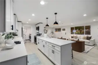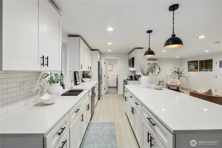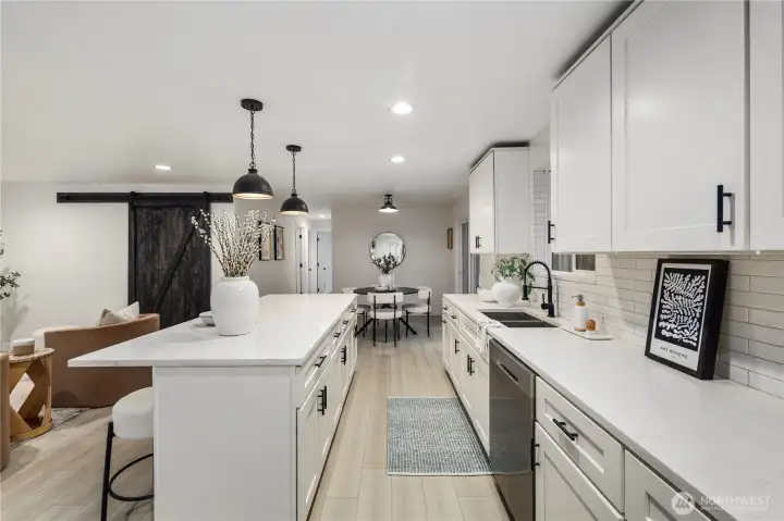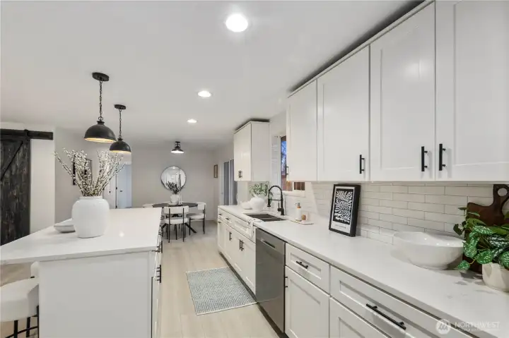 Welcome to this beautifully renovated rambler in Bonney Lake’s desirable Ponderosa neighborhood! This 1,296 sqft home offers 3 bedrooms and 1.5 baths with a bright, open layout perfect for modern living. The updated kitchen features sleek white cabinetry, quartz countertops, stainless steel appliances, and a stylish tile backsplash. Recent upgrades include new roof, new paint, vinyl plank flooring, millwork, lighting, and plumbing fixtures throughout. Spacious bedrooms and refreshed bathrooms with elegant tile finishes. Enjoy the huge fully fenced yard with brand new landscaping and an extended driveway ideal for RV parking. New septic system installed. Conveniently located near parks, schools, and highways. Tour today!