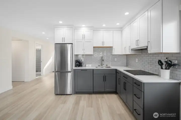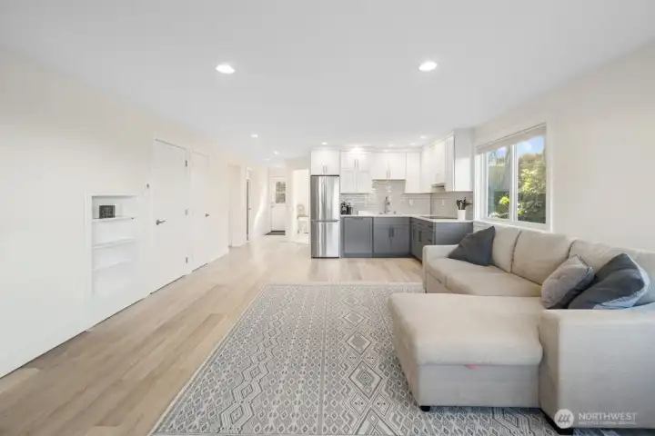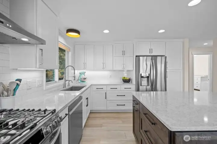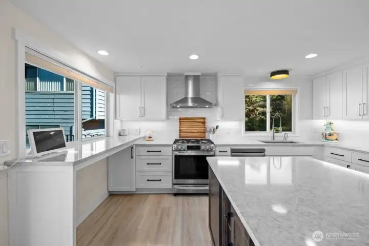 Walkable & updated 4-bed Edmonds Bowl home offering views of the Sound, Olympics & Whidbey. Open-concept great room filled w/ natural light. Chef’s kitchen features white shaker cabinetry, quartz counters, SS appliances, gas range & spacious island w/ seating perfect for everyday living & entertaining. Step outside to the oversized view deck to relax & take in the views. Thoughtful updates throughout include modern lighting, wide-plank LVP flooring & top-down/bottom-up blinds. Lower level offers flexibility for multi-generational living or income potential, complete w/ separate entrance, 2nd full kitchen, & 2nd laundry. A/C & mini-split heat pumps for yr-round comfort plus 2-car garage w/ EV charger & ample driveway parking for guests. All just seconds from the shops, restaurants & waterfront of downtown Edmonds.