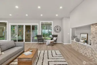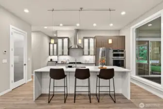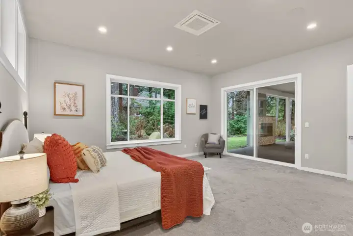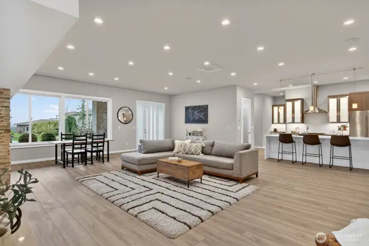 Enjoy the rare combination of single-level living and incredible views in the coveted Carnoustie neighborhood of Semiahmoo. Thoughtfully designed for both everyday comfort and elevated entertaining, this beautiful home features a stunning open-concept layout with an expansive great room that flows seamlessly into the kitchen and dining areas. The chef's kitchen includes custom quartz counters, JennAir pro appliances, back lit cabinets and generous pantry space. High-end features include four-zone radiant heat, ductless A/C, energy-efficient appliances, a wet bar with wine fridge, soaring 10-foot ceilings, and on-demand hot water. Oversized windows throughout capture breathtaking water and mountain views, filling the home with natural light. The home includes two additional bedrooms, one of which enjoys beautiful water views and makes an ideal home office or guest space. Experience the best of Pacific Northwest living year-round on the spacious covered patio, complete with a cozy exterior gas fireplace—perfect for relaxing or entertaining in any season. The exterior is equally well-appointed with hot and cold outdoor spigots, drip irrigation, and a full sprinkler system. Retreat to the luxurious primary suite, featuring a spacious ensuite with a massive walk-in tile shower and multiple shower heads for a spa-like experience. A large heated garage with storage space completes the home, offering practicality along with function.