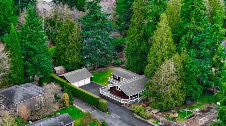 Every so often, a truly special home comes along—one that feels both rare and unforgettable. Today is that opportunity. Nestled at the end of your own private lane on a serene 0.34-acre flag lot, this one-of-a-kind retreat is filled with charm, personality, and exceptional value. A welcoming wraparound Trex deck invites you inside, where warmth and character greet you at every turn. Rich wood accents and inviting spaces create a home that is both comfortable and full of soul. The thoughtfully designed floorplan offers great room living featuring 3 bedrooms plus a versatile office. Step outside to discover an expansive 890 sqft detached 3-car garage/shop, along with a private park-esque yard ideal for relaxing, entertaining, and making memories. Perfectly located in desirable N Rose Hill, just a short stroll to Forbes Lake and N Rose Hill Woodlands Park, while also offering quick access to top-rated schools, shopping, I-405, and the Eastside’s vibrant tech hubs. A home like this doesn’t come around often so come experience its warmth and charm for yourself.