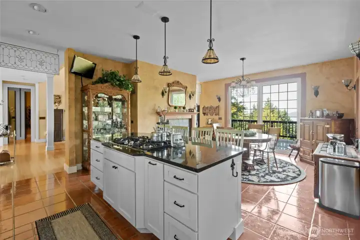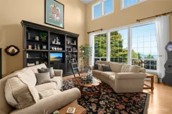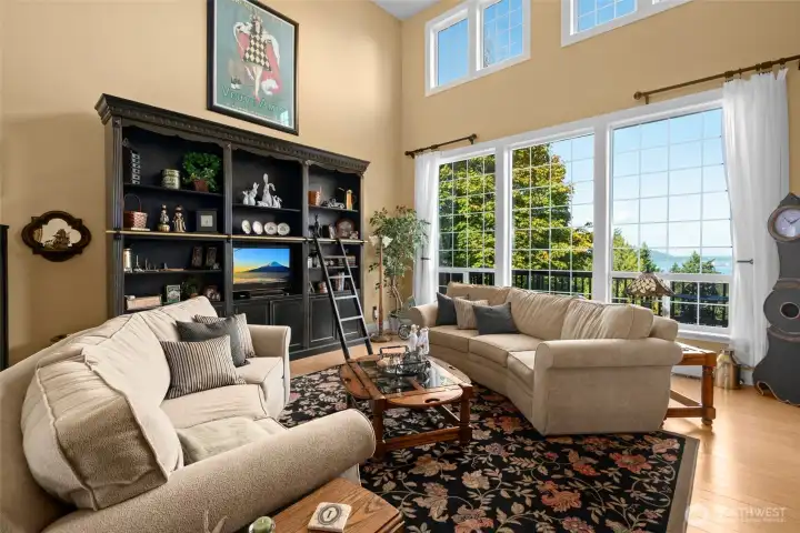 Beautiful custom craftsman home with main level living set on just over 2.5 acres overlooking Fidalgo Bay & the shipping channels! Elegant living room with a double sided gas fireplace & soaring ceilings with walls of windows to capture the water views & private setting. Chef's gourmet kitchen is ready for entertaining featuring a generous island, granite counters, stainless appliances & walk-in pantry. Large primary bedroom with updated ensuite bath and spacious walk-in closet. Upstairs offers two guest bedrooms, loft area & an updated guest bath. Cozy family room with kitchenette, bonus room and bath on the lower level. Wrap around deck, concrete patio, lush landscaping and a serene waterfall! RV/boat parking! Gated entry & access to Anacortes Forest Land trails. This property offers a perfect blend of private, tranquil living while being just 5 minutes from downtown Anacortes!!! NEW ROOF to be installed before closing.