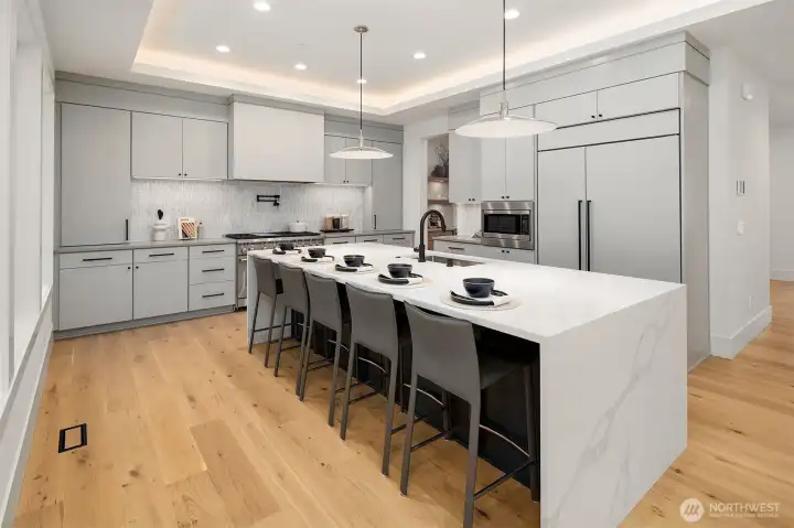 MN Custom Homes presents a transitional design on one of Rose Hill's premier streets. Entertainment spaces include: 2 story great room, chef’s kitchen, outdoor covered living space with heaters & upper-floor bonus room. Main floor guest suite. Upper floor primary suite with 5-piece bath and heated floors. Abundant natural light. Private office and designated dining room. Sunny, spacious backyard. Smart & green home features throughout, including solar panels. 3 car wide garage. Convenient access to DT Kirkland amenities, parks, schools & all major Tech campuses.