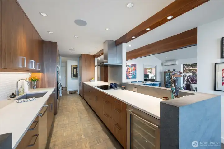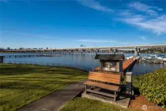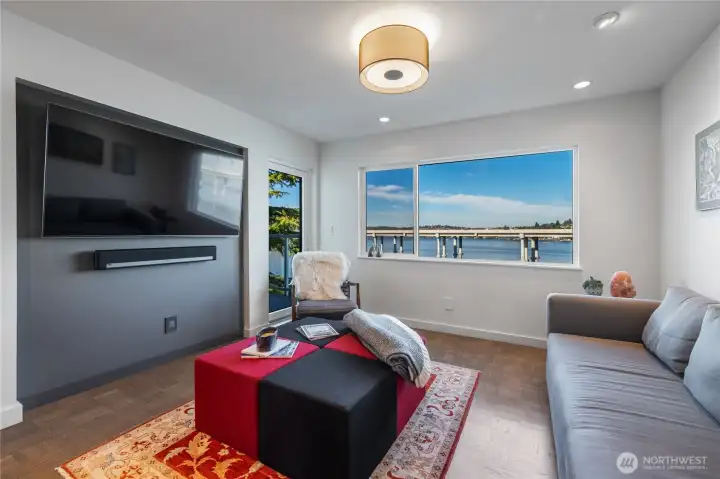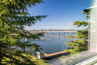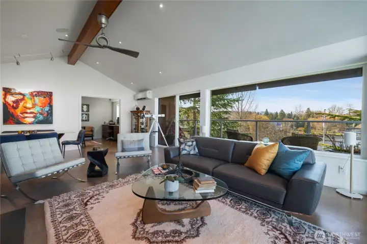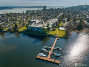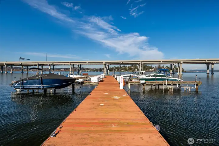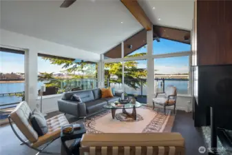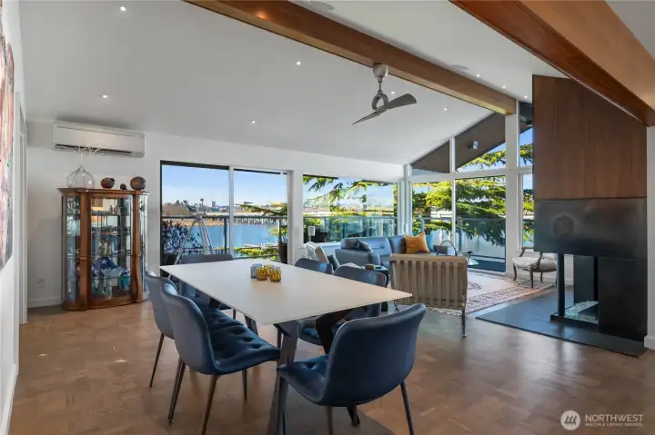 This is the home you’ve been waiting for; a large Mid-Century condo sitting on the edge of Lake Washington with north and west water, and sunset views from every window. From the oversized windows and the wrap-around deck you will experience eagles, herons, kayakers, boaters, and crew shells gliding by on a daily basis. You will be impressed by the fully-remodeled home with generous use of rich woods, original parquet floors and waxed steel details. An exquisite kitchen opens to the dining and living rooms, and also to the relaxing lounge, a perfect place to start and end your day. Every detail has been considered, including adding additional insulation to keep the home always comfortable. State of the art lighting throughout. Mini-splits keep the house cool on warmer days. The office has water views and frosted sliding doors that open to the living room. The Primary Suite is tailored and elegant with wood panels, metal trim and floor-to-ceiling drapes; very Mad Men. Bathrooms with heated floors and Robern cabinets. Multiple closets and a well designed kitchen provide a copious amount of storage. Plus an additional storage closet just steps from the front door. Community features a seasonal pool, a dock for your boat, an exercise room, plus bike & kayak storage, and a gated garage parking. Enjoy Madison Park beach, restaurants, shops and much more. Appreciate easy access to the freeway, downtown and the University of WA. Waterfront living at its best.