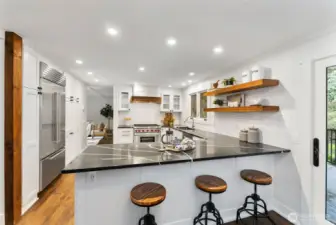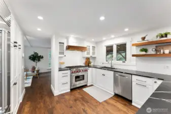 Thoughtfully renovated from top to bottom, this charming home blends original character with a refined, modern sensibility. At the heart of the home, a true chef’s kitchen features a full suite of Sub-Zero and Wolf appliances, custom cabinetry, and updated lighting designed for both everyday living and effortless entertaining. Each bathroom has been completely reimagined with curated tile selections, Japanese smart toilets, and elevated fixtures that reflect a quiet luxury.Beyond aesthetics, the core systems have been comprehensively improved over the past few years. Recent upgrades include a new furnace, water heater, washer and dryer, earthquake foundation retrofit, 500-gallon propane tank, new attic and crawl space insulation, and fresh interior and exterior paint. The result is a home that offers both beauty and confidence in its infrastructure.Privately sited on a quiet cul-de-sac, the property is surrounded by mature gardens that provide year-round color, texture, and frequent wildlife sightings. Its location offers an easy walk to Lynwood Center and Blakely, balancing tranquility with convenience.A rare opportunity to own a home where charm and thoughtful modernization are seamlessly aligned, ready for its next chapter.