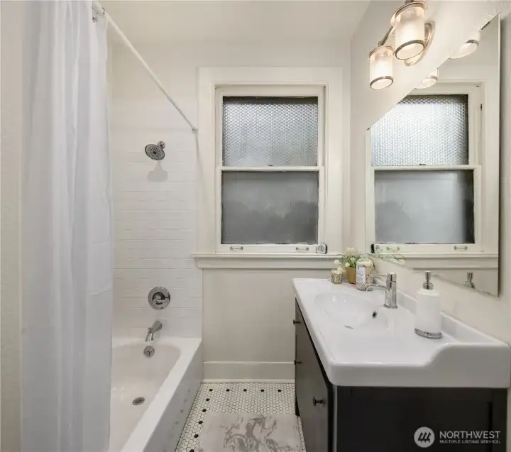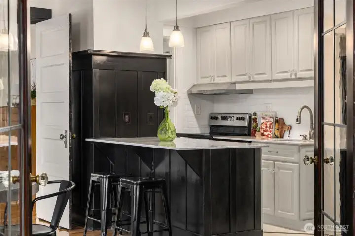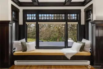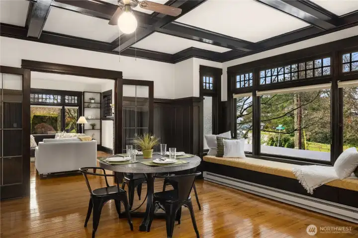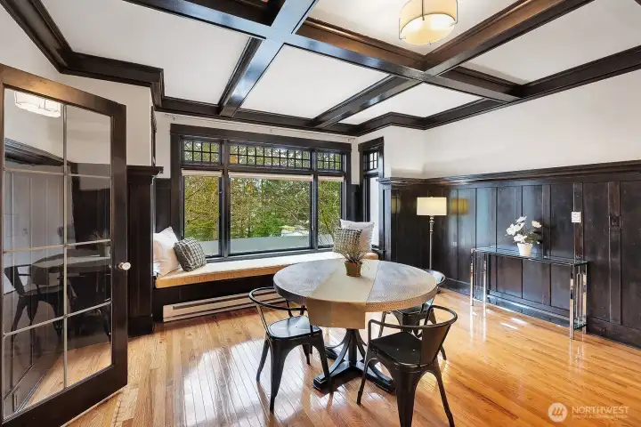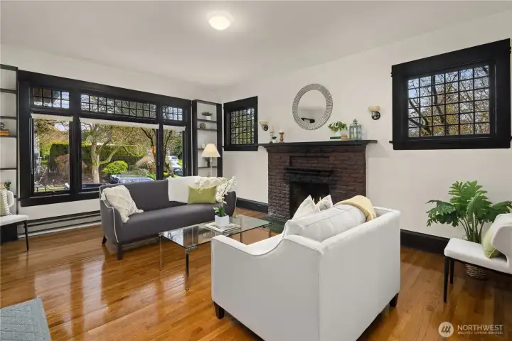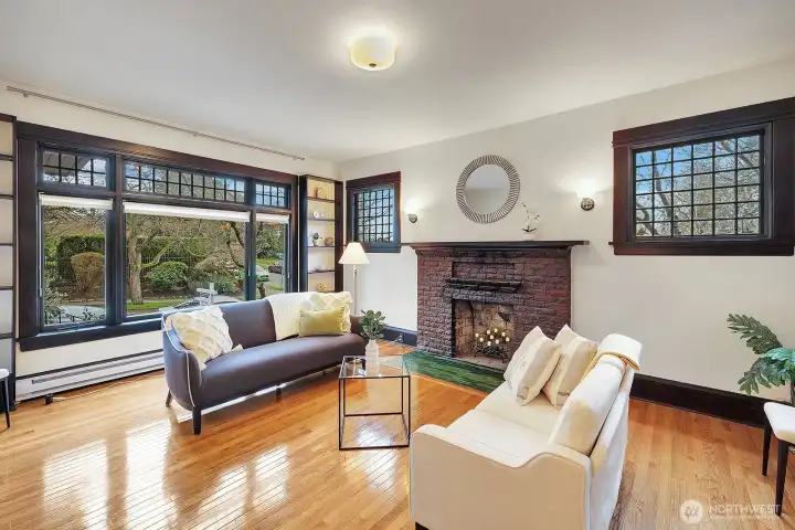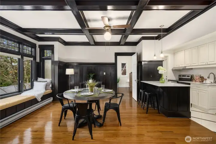 Bold architecture meets a thoroughly modern renovation inside this standout unit, set in an elegant 6-unit brick beauty on a tree-lined block of coveted N. Capitol Hill. The striking exterior sets the tone & this unit delivers with a serious style. Rich dark millwork, box-beam coffered ceilings & polished hardwood floors paired with crisp white walls & updated finishes that create a look that feels fresh & intentional, not frozen in time. Renovated kitchen features Carrera marble surfaces and island counter, pendant lighting & black appliances that complement the rich woodwork, flowing into an open dining area beneath those signature beams. The oversized window bench with storage overlooking a tree canopy is the kind of detail people fall in love with. Living room centers on a classic brick fireplace flanked by built-ins, with natural light pouring through original windows. Airy sun-soaked rooms, tall ceilings, generous bedroom, fully updated bath w/new tub & hex tile floors, in-unit W/D & covered carport parking complete the package. Pet-friendly, 2024 new roof, basement storage. Quick access to I-5, SLU, UW, 520, Lake Union & the Eastside. Minutes to Fred Hutch, Eastlake, Seattle's medical corridor & Downtown. Pike Place & Capitol Hill's eclectic dining w/its incredible mix of global flavors & cultures all close at hand. Steps to Roanoke Park, the Roanoke Lid Project & easy reach of Volunteer Park & the best of what this vibrant neighborhood has to offer.