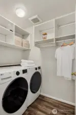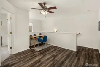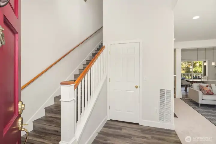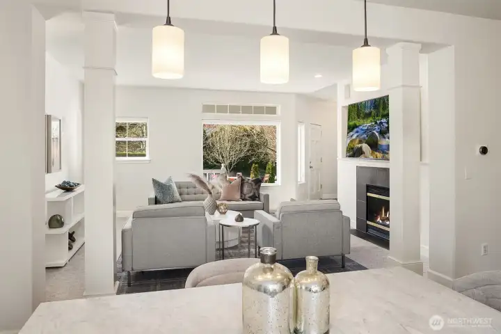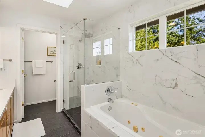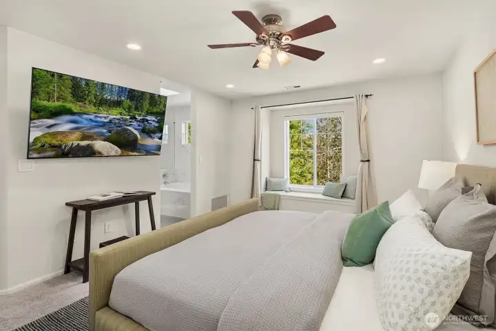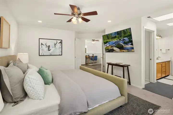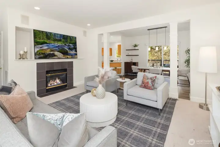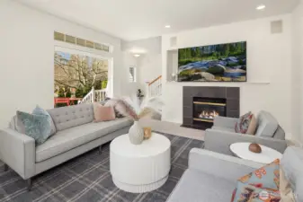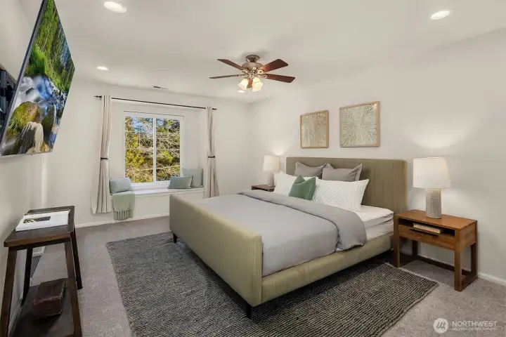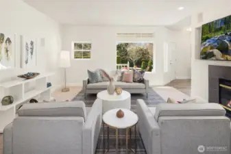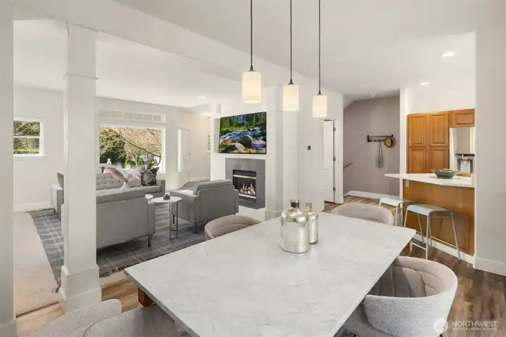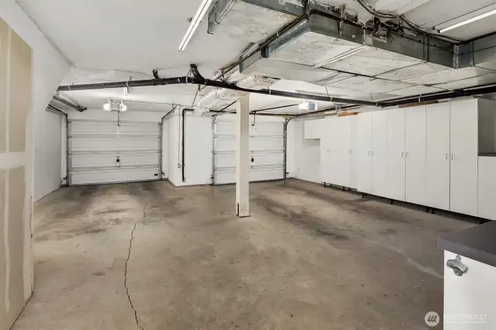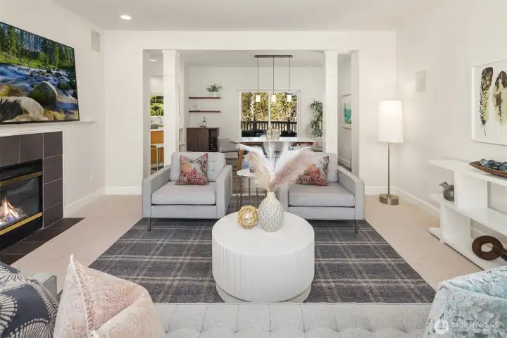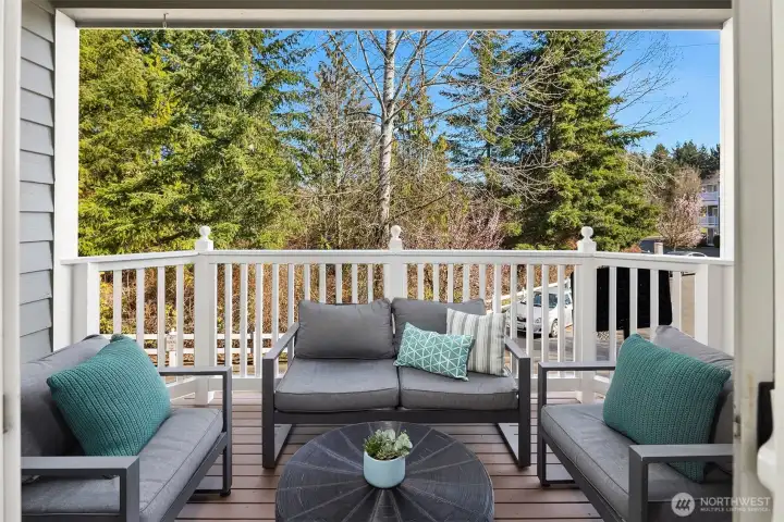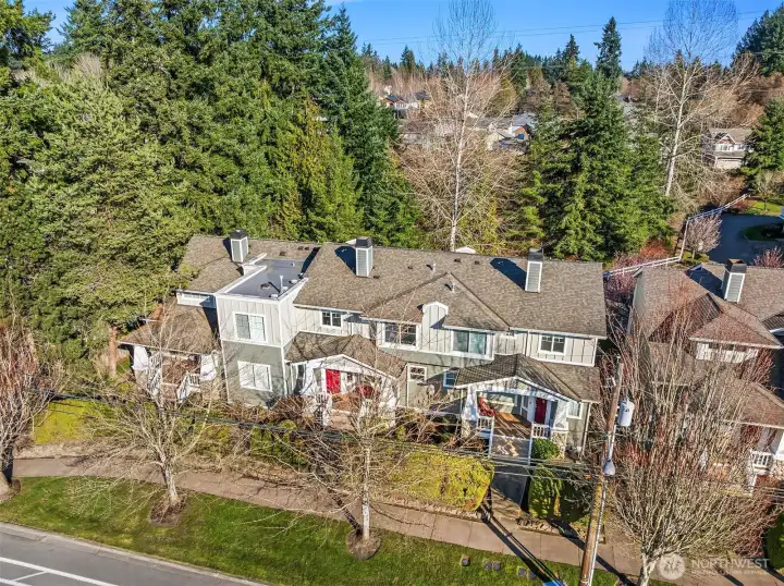 A modern townhome (not a condo!) that lives like a house, with 1,590 sq ft on two well-laid-out floors plus a huge 810 sq ft 2-car garage & off-street parking for 3 additional cars. Feel the mental health benefits of great light year-round from lots of big west- and east-facing windows on both levels; enjoy the privacy and convenience that comes from being centrally located but surrounded by trees instead of staring into your neighbors' windows; be ready for whatever life brings with a big second bedroom that works well as an office, guest room, or bedroom, plus an additional office nook on the second-floor landing; make your home your sanctuary with a huge primary suite that includes a walk-in closet & en-suite 5-piece bathroom, as well as a cozy reading nook in the bedroom; relax on your private deck off the dining room while listening to the sounds of wildlife from the wetland that borders the property; take house projects off your list thanks to the sellers' meticulous bathroom remodels and the newly replaced water heater, A/C unit, furnace, and smart washer & dryer; and outsource all of your landscaping & exterior maintenance, including roof replacement (2015), to the well-run & friendly HOA. When it's time to leave the house, walk 5 minutes to "Castle Park" or 10 minutes to Mark Twain Elementary, or walk/bike 2 miles to downtown Kirkland and numerous parks along the waterfront trail; and drive 15 minutes to the Redmond or Kirkland light rail stations. Welcome home.