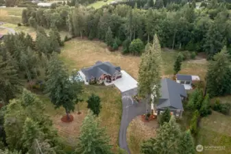 Custom & Timeless on Five Private Acres with the Best Mancave in all of Clark County! Modern, Great room layout with 12' ceilings everywhere. Entertainer's Dream Kitchen showcasing huge Island "Socializing" bar + sleek Dining Room. Two Primary suites on opposite ends of the house, plus Two Additional Bedrooms + Office and a Den! Loft has a hip Theater room. Expansive Patio & Pool in parklike setting. 400 amps to house and 400 amps in the shop with same style as the houses one-level Apartment. Everything top-of-the line construction. So much pavement! Upper loft cool game room. A Masculine, Self-contained property for an incredible lifestyle. About five minutes to the High School and 30 minutes to PDX but not another home in sight.