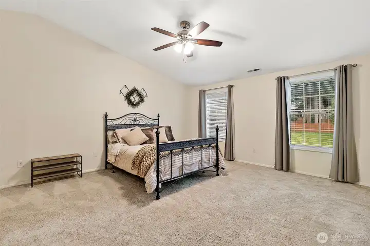 Classic farmhouse-inspired colonial in Puyallup's Gem Heights Community! Situated on a prominent corner lot, this spacious ~3,000 sq ft home offers timeless curb appeal, thoughtful design, and exceptional indoor-outdoor living. The versatile layout includes 4 bedrooms and 2.5 baths, plus a unique bonus living space above and behind the oversized two-car garage—perfect for a media room, home office, or flexible retreat. Inside, the home is filled with natural light from expansive windows and enhanced by charming architectural touches including built-in shelving, stylish decorator lighting, and warm gathering spaces designed for daily living and entertaining. The kitchen and main living areas flow seamlessly to the outdoor spaces, creating a comfortable and welcoming environment throughout. Step outside to enjoy a beautifully maintained backyard with dedicated garden areas, a full irrigation system with timer, sprinklers, and drip lines for easy care landscaping. Three separate deck spaces—including a covered deck—offer multiple areas to relax, entertain, or enjoy the peaceful setting. Located within the desirable Gem Club HOA, residents enjoy access to outstanding community amenities including a swimming pool, tennis courts, and sport courts. All of this within the highly regarded Puyallup School District and close to shopping, dining, and entertainment. A rare opportunity to own a home that blends classic character, generous living space, and a vibrant community lifestyle.