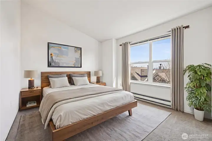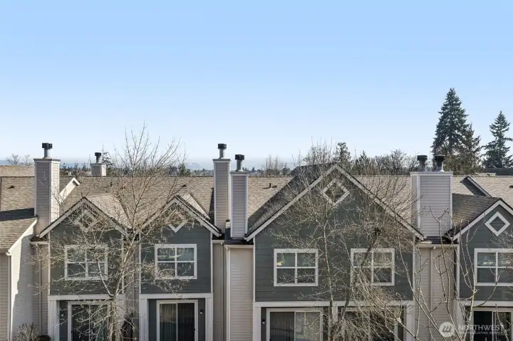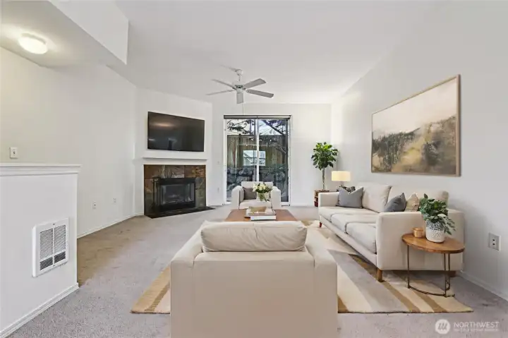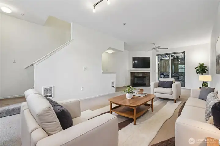This Wildwood townhouse has it all in an unbeatable location! The main level features an open-concept living and dining area with a cozy fireplace and walkout patio, plus a kitchen offering ample storage and abundant natural light. Major systems and appliances have been updated, providing added peace of mind. Upstairs, the primary suite boasts vaulted ceilings and a en-suite bathroom, complemented by a bright second bedroom, an additional full bath, and convenient in-unit laundry. Additional perks include a tandem garage and driveway parking, easy access to commuter routes and light rail, and nearby Alderwood amenities and restaurants. The pet-friendly community boasts a pool, hot tub, fitness room, and clubhouse with no rental cap. Welcome home!