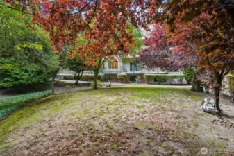 Welcome to this inviting 2 bed, 2 bath condo in a charming, secured-entry building. Ideally positioned between the 1st and 3rd floors, this home stays naturally cool in summer and warm in winter. Overlooking a peaceful garden, it's quiet and serene, even at night. Enjoy light-filled living spaces, an open-concept kitchen with breakfast bar, and a spacious layout designed for comfort. The primary suite includes a full en-suite bath. Dedicated, secured parking, storage space, in-unit laundry and mature landscaping. Just minutes by bus to the Northgate and 130th street light rail stations, shopping, dining, and UW Medical Center Northwest .This location blends urban convenience with a tranquil residential feel.
