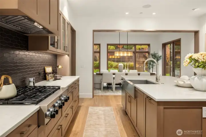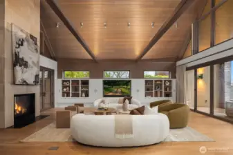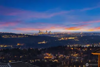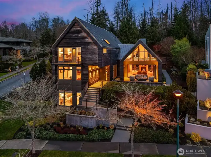 Prestigious, award-winning architecture crowning the Harrison neighborhood in Issaquah Highlands: This stunning, corner lot residence, designed by Adams Architecture was recognized by the AIA as a “Home of Distinction: Gabled Elegance". German influences helped craft this modern, twin-gabled A-frame into a contemporary work of art. Upon entering, natural elegance takes center stage with premium white oak flooring, organic materials, and bespoke craftsmanship throughout. The heart of the home features a Chef's kitchen with expansive quartz counters and temperature-controlled wine room. Family room boasts impressive vaulted cedar ceiling and a stunning stone indoor/outdoor fireplace. Designed for entertaining, formal outdoor living spaces frame picturesque views of the Olympic Mountains and Seattle skyline, while the Eastern terrace offers a tranquil retreat against a lush greenbelt. Upstairs, the Primary suite offers vaulted ceiling, glorious western views, a large custom closet, and spa-inspired bath with wet room. Two additional large bedrooms and a bonus room sit on the upper level. A lower-level guest suite is perfect for hosting. The exterior materials are low-maintenance and renewable; the standing-seam metal roof and charred shou sugi ban siding will age gracefully over time. The expansive, flat driveway doubles as your own private pickleball court. Experience this home in person to truly capture its beauty, design, and elegance.