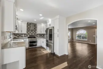 An exceptional offering in the intimate, gated enclave of Canter Ridge, just moments from Rogers High School. This beautiful home has been well maintained and thoughtfully updated. The main floor showcases stunning Pergo WetProtect luxury laminate flooring, two cozy gas fireplaces, designer fixtures, quartz countertops, custom cabinetry, elegant tile work, and premium stainless steel appliances - including a gas range for the culinary enthusiast. Upstairs features a convenient laundry room, updated guest bathroom, and spacious bedrooms. The primary suite is a true retreat, featuring a third fireplace and remodeled ensuite with a relaxing jetted tub. A fantastic whole-home central vacuum system services both the home and garage. The low-maintenance + high-enjoyment landscaping will be in full bloom soon with convenient SMART sprinkler system and charming water feature. All appliances convey, along with garage storage organizers, workstation, and EV charger. A 2022 high-efficiency heat pump and furnace with air purification system ensure optimal comfort year-round. This home is better than new and move-in ready in the Puyallup School District.