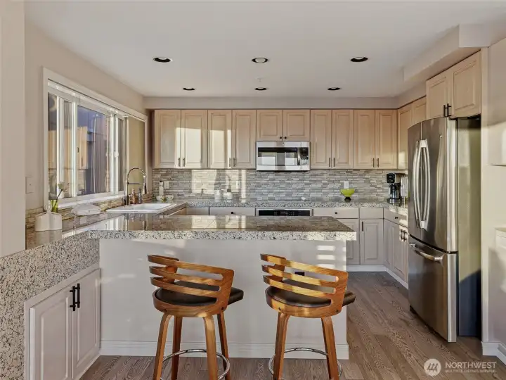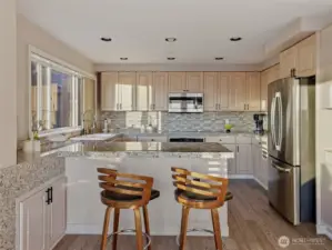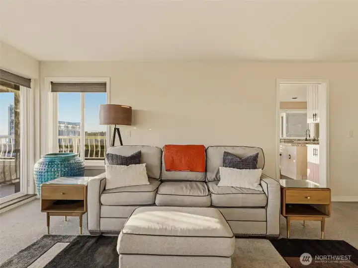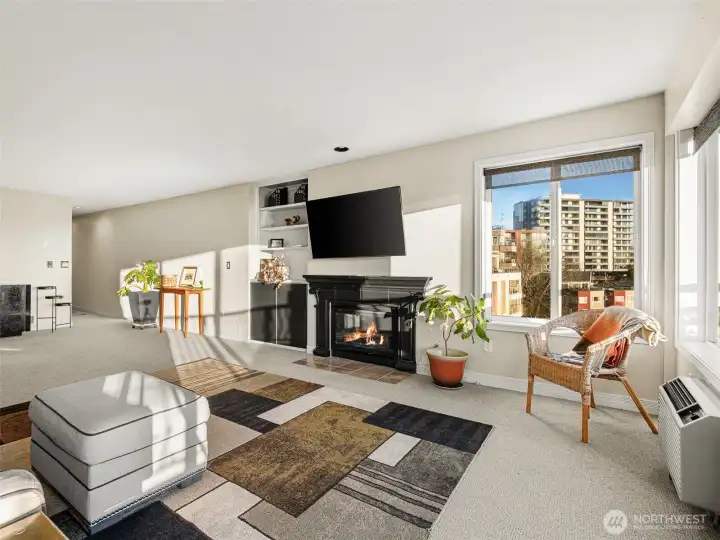Enjoy sweeping panoramic Puget Sound views & beautiful natural light from this west-facing condo. With over 1,500 square feet, the spacious layout offers 2 bedrooms and 2 full bathrooms designed for comfortable city living. Two gas fireplaces create a warm and inviting atmosphere in both the living room and dining area. The updated kitchen opens nicely for everyday living and entertaining. The primary bedroom features a walk-in closet and en suite bathroom w/jetted tub, while the unit also offers ample closet and storage space throughout. Unit offers A/C for hot summer days and a gorgeous patio overlooking Puget Sound. Enjoy the convenience of secure garage parking with TWO assigned spaces plus secure guest parking, and private storage. Just moments from Seattleās best dining, shopping, and public transit.