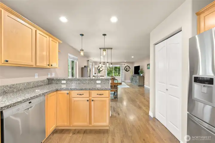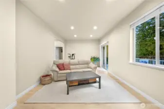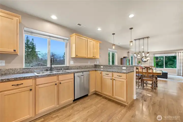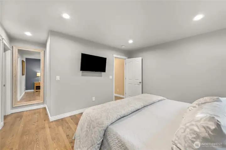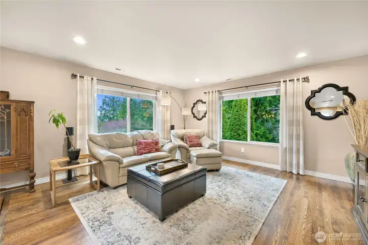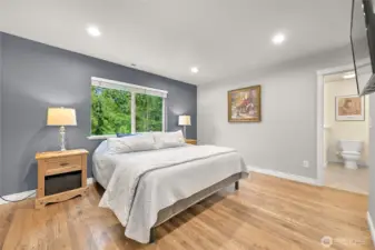 Beautiful home in a quiet, picturesque setting backing to greenspace and adjacent to Galbraith Mountain trails. This 4-bedroom, 2.5-bath home features a main-level primary suite, hardwood floors, and a chef’s dual fuel range. The bright corner lot fills the home with natural light, creating a warm and inviting feel. The spacious lower-level family room offers a cozy fireplace and updated LVP flooring that flows to the private back deck. Enjoy a fully fenced yard, seasonal creek, newer roof, and EV charger. With mountain biking trails out your back door and walkable to 240 acres of stunning Whatcom Falls Park, this location blends privacy with easy access to outdoor recreation.