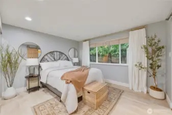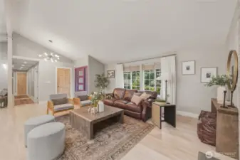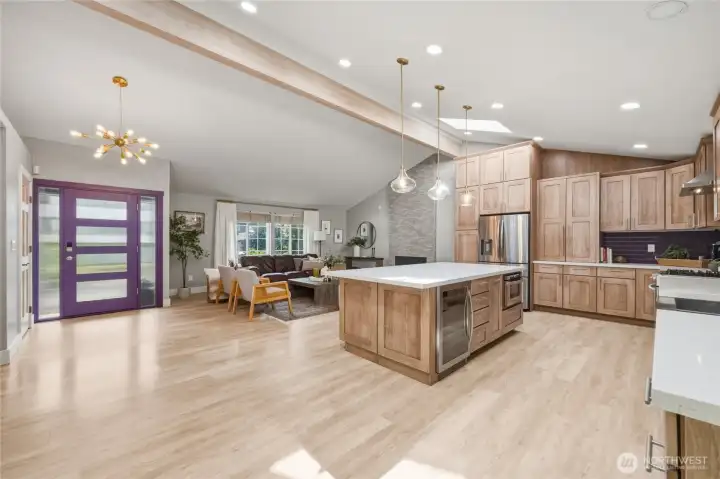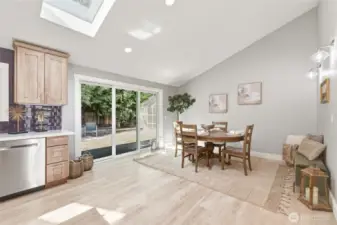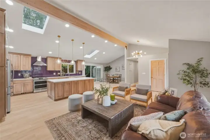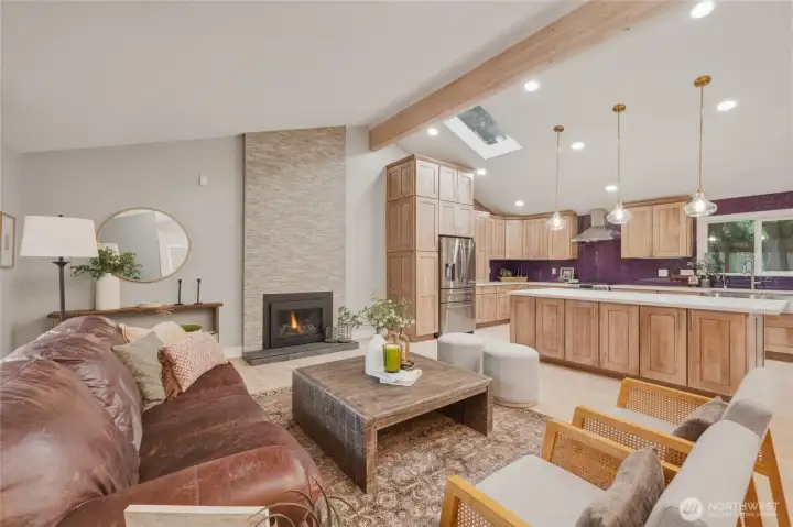 Prime Redmond location near Microsoft, just minutes to Downtown Redmond light rail (Link 2 Line) with easy connections across the Eastside and Seattle. Convenient to I-405 and SR-520, with Viewpoint and Idylwood Parks nearby. Situated on a nearly 10,000 sq ft corner lot in a cul-de-sac, the home offers privacy and a welcoming presence. The living room, dining area, and gourmet kitchen connect seamlessly in an open Great Room layout, anchored by a fireplace and front-facing windows that fill the space with natural light. Skylights and vaulted ceilings enhance the sense of openness, while travertine and vinyl plank flooring add both texture and durability throughout. The kitchen features stainless steel appliances, a deep split sink, a large island, a built-in wine fridge, and abundant cabinetry for organized storage. A separate dining area opens through a 3-panel slider to the serene, fully fenced backyard, creating effortless indoor-outdoor living. The primary bedroom features an ensuite ¾ bath. Two additional bedrooms, a full bath, a laundry room, a tankless water heater, an efficient heat pump for heating and cooling, and a 2-car garage complete this thoughtfully designed home located in the award-winning Lake Washington School District.
